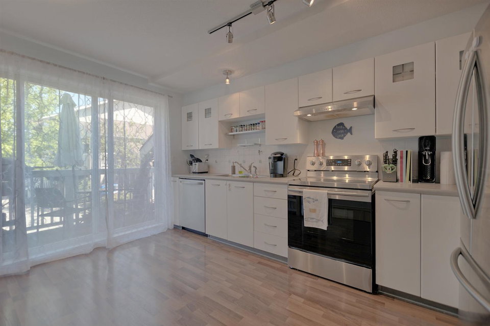 Your chance for this PERFECTLY laid out three level, two bedroom TOWNHOUSE that has a REC ROOM below that walks out to a BEAUTIFUL patio & LARGE enclosed YARD to have some AWESOME summer nights in! So much more than what a condo offers & to have all this and a garage at almost the same price is an ABSOLUTE no brainer for down the road! GORGEOUS laminate floors throughout, NEW S/S appliances & lighting fixtures, lots of storage spaces and built in shelving. 2nd bathroom rough in already plumbed. EXTREMELY private backyard is WEST facing, ideally situated within the complex as there are no other units behind you staring back! NEAT amenities such as a basketball court and party room! Parking pad in front of garage for 2nd car. 2 dogs or cats allowed! 12 Rentals allowed (full) in the complex!