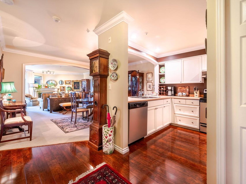 This HOME is only for the buyer that wants a PHENOMENAL, OPEN layout where everything is GRAND with no neighbouring walls in a TOP NOTCH complex! MASSIVE is the only word to describe each of the rooms! Comes with a BEAUTIFUL, HUGE southern-exposure patio, perfect for summer evening dining and sharing GOURMET meals with your friends. Alternate direct access from a flight of stairs off the street offers AMAZING convenience! Guest suite, car wash station, AMPLE VISITOR PARKING and many other perks in this WELL MAINTAINED complex! Newer fridge, washer/dryer and upgrades than many don’t do, like dimmer-switches, smooth ceilings, upgraded water shut-offs, crown moldings and more! A PRIVATE location but close to all Sapperton has to offer! This RARE HOME just has a SPECIAL type of AMBIANCE!