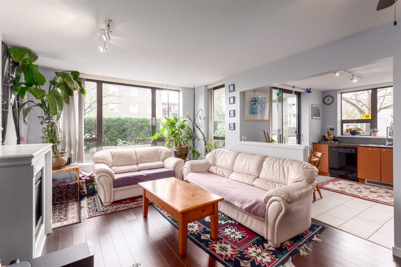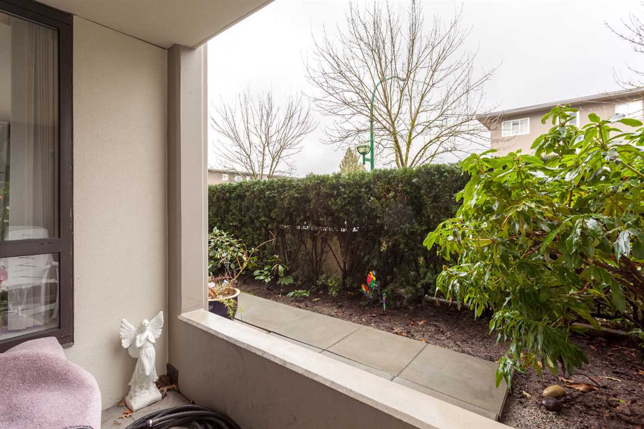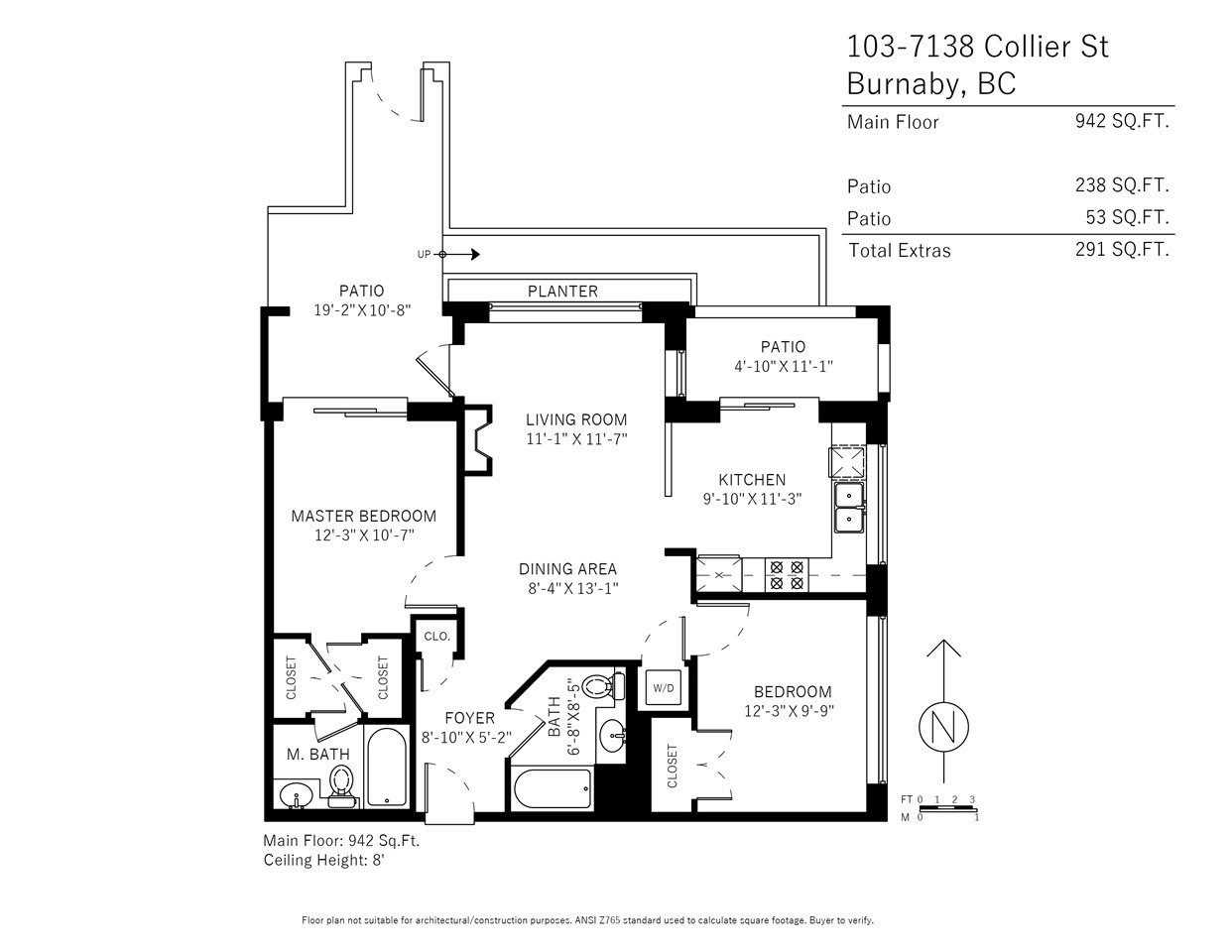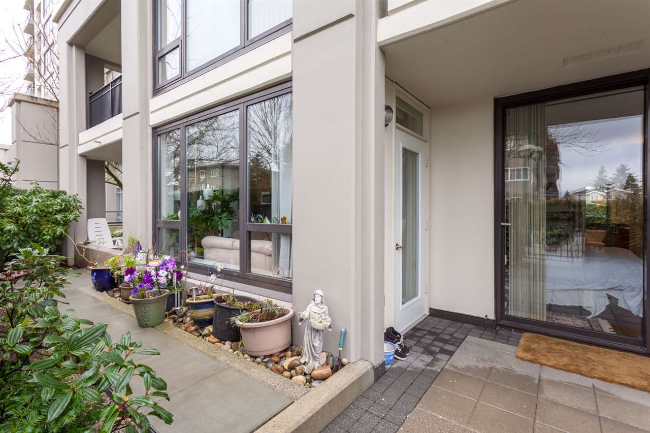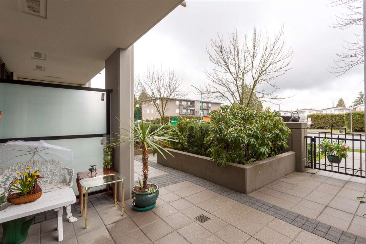 Rarely available ground level end unit in Bosa built concrete low rise. On quiet side of building,unit has 2 large patios & gated private entrance off the street. 2 bedroom, 2 bath home offers a functional open floor plan. Large eat in kitchen has granite counter tops, stainless steel appliances including gas stove + access to private patio. Updated laminate flooring throughout & cozy fp in living room. Both bedrooms are a good size, separated by living room & dining room. 1 parking & storage locker. (additional parking+ storage available from Developer). Building has sunny gated common greenspace & is pet friendly. Great Highgate location steps to Save On Foods, Shoppers Drug Mart, Starbucks, restaurants minutes to Edmonds Skytrain station, Community Centre, Library & parks & Metrotown.