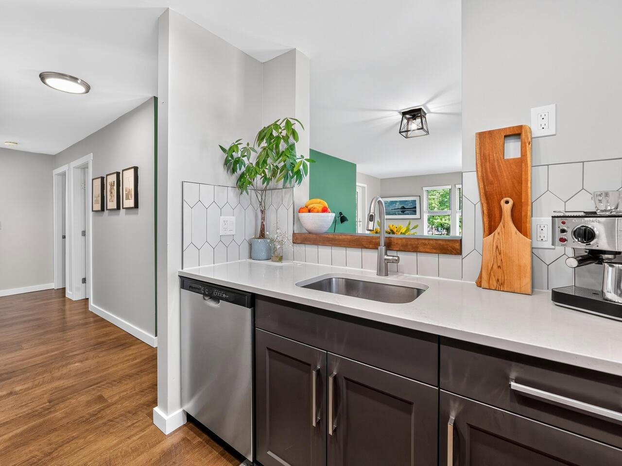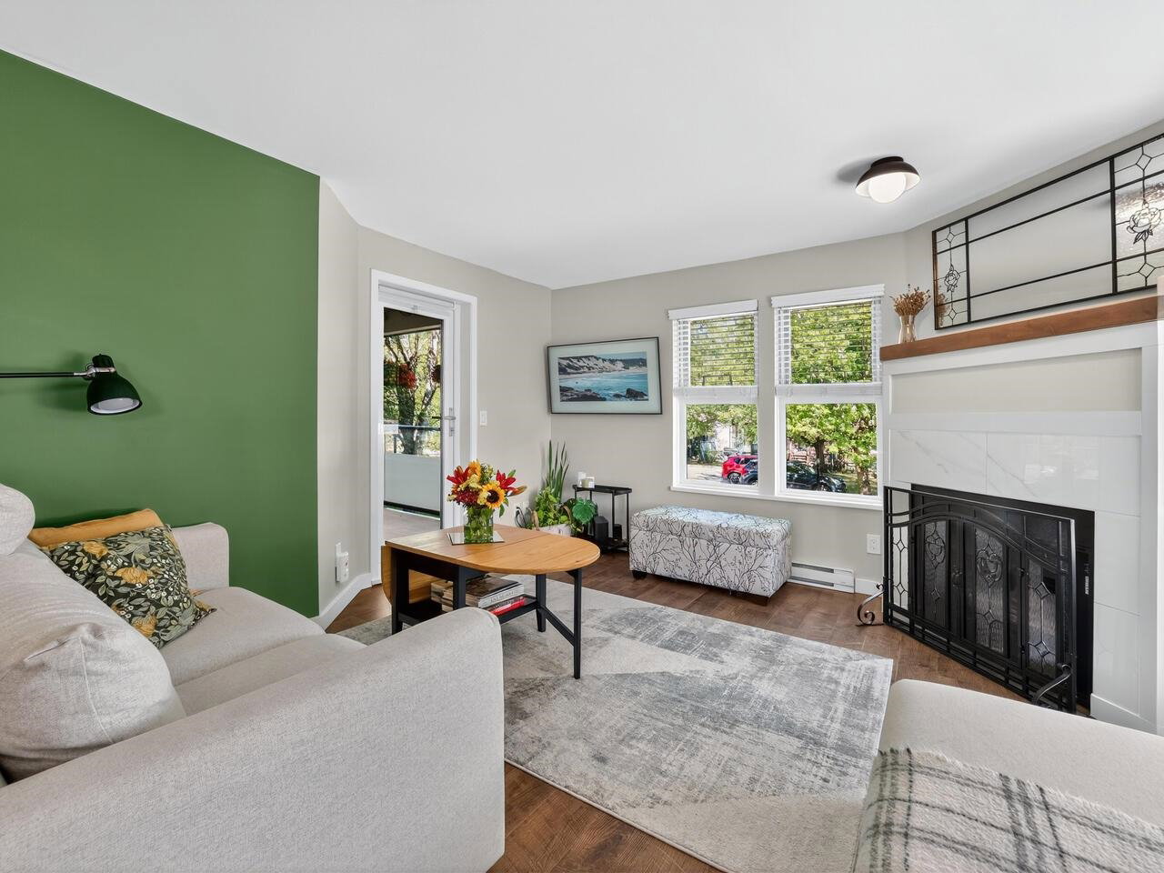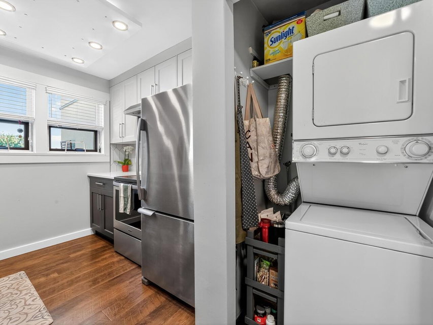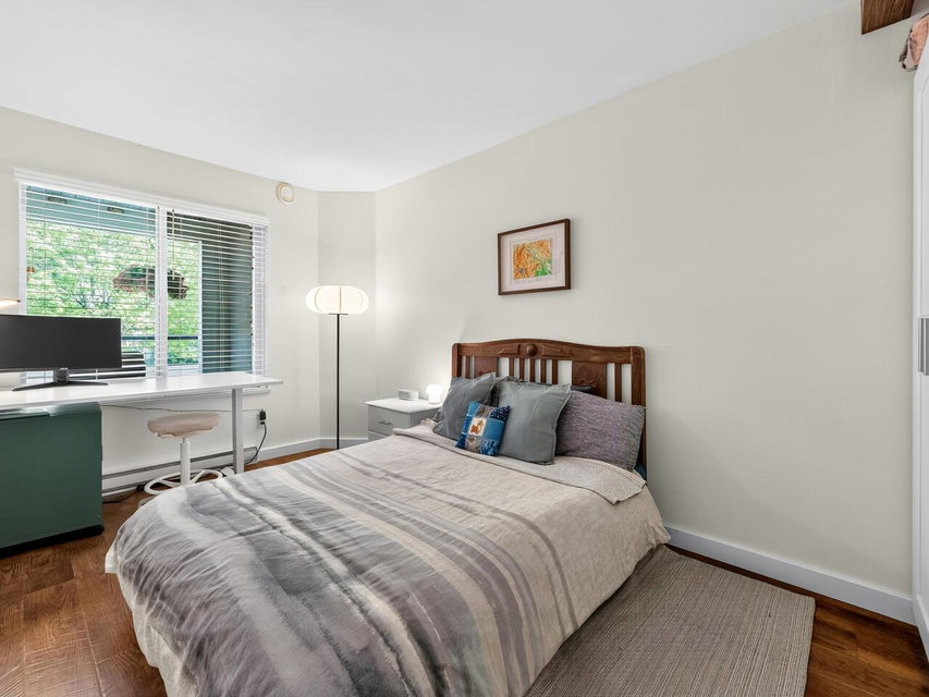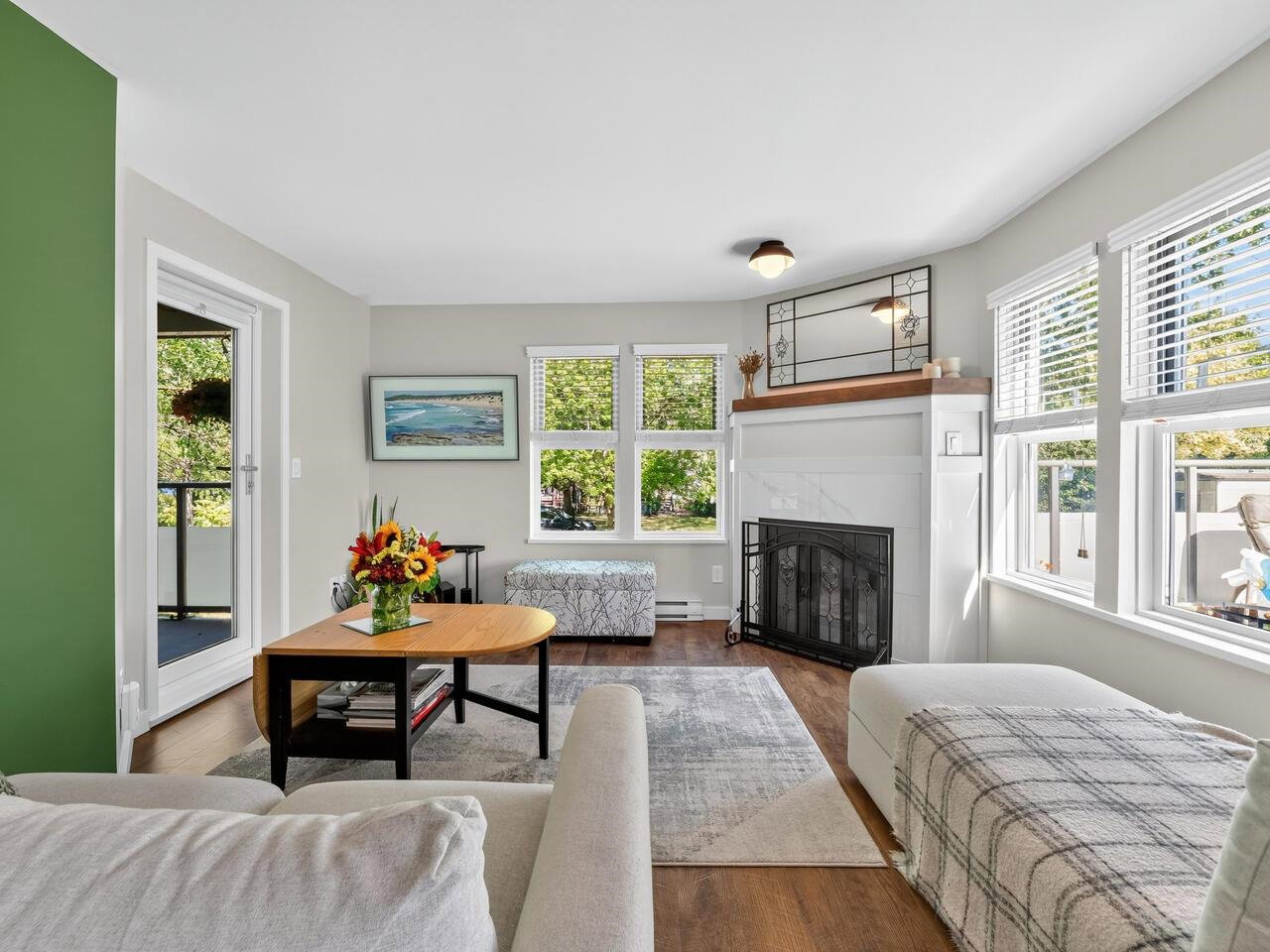 If you’ve ever been looking for a DECK from the GOD’S, well here it is! This PHENOMENAL two bedroom and one bathroom tastefully RENOVATED HOME is one not to be missed! From the two patio’s with one able to HOST the family REUNION, stone countertops, S/S appliances, GORGEOUS flooring, AWESOME walk in closet built ins, MODERN doors throughout, IMPECCABLE paint or the AMBIANCE of the gas fireplace, this is a HOME that has it all! TONS of windows that adds lots of sunlight is just one more sought after extra! An EXCELLENT pro active strata is just one more BONUS in one of the most CENTRAL locations possible, close to everywhere in every direction! Two dogs (except non social breed like a Pitbull) with no size restrictions or cats allowed! Come quick and make you friends ENVIOUS of your HOME!