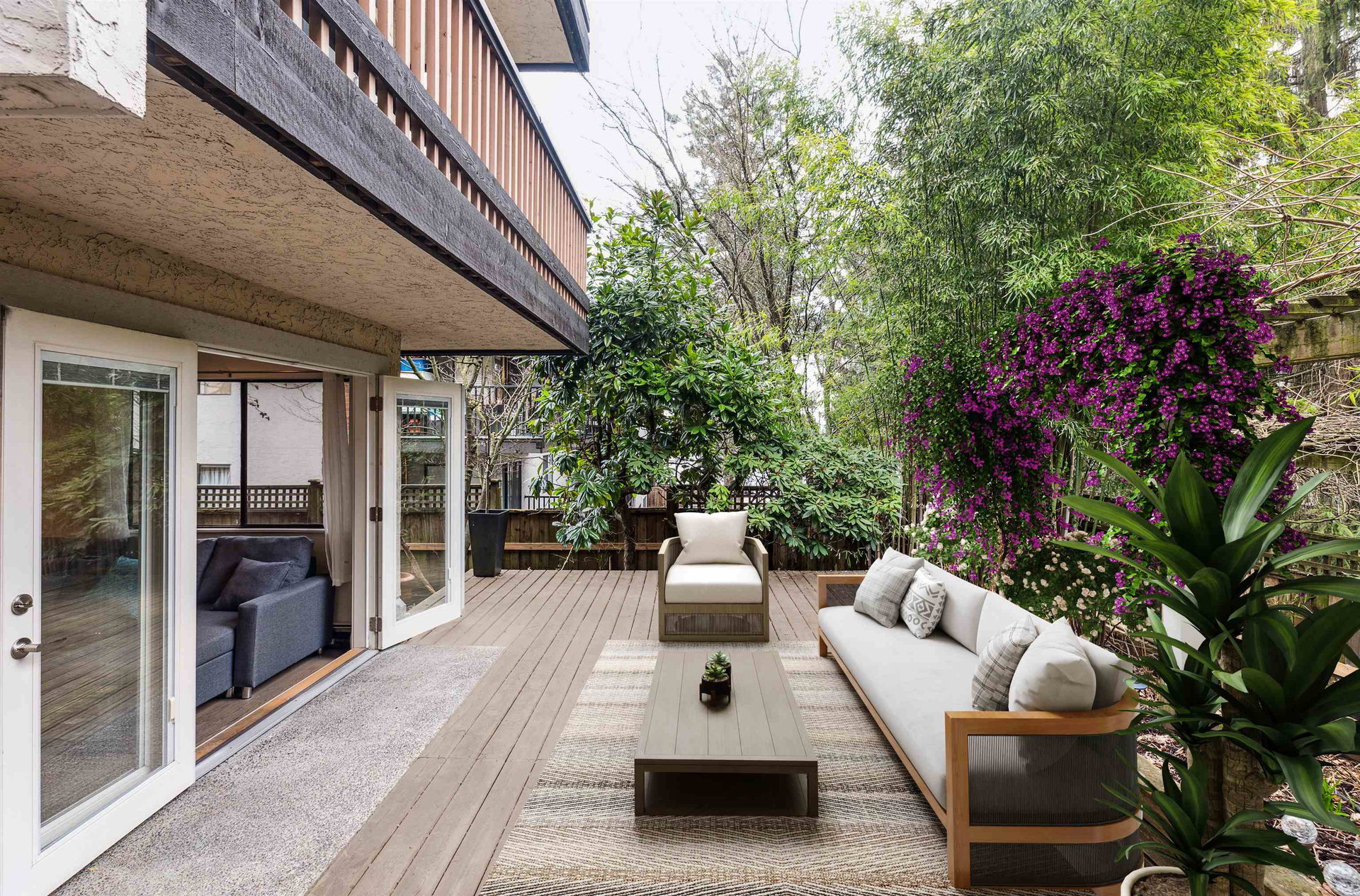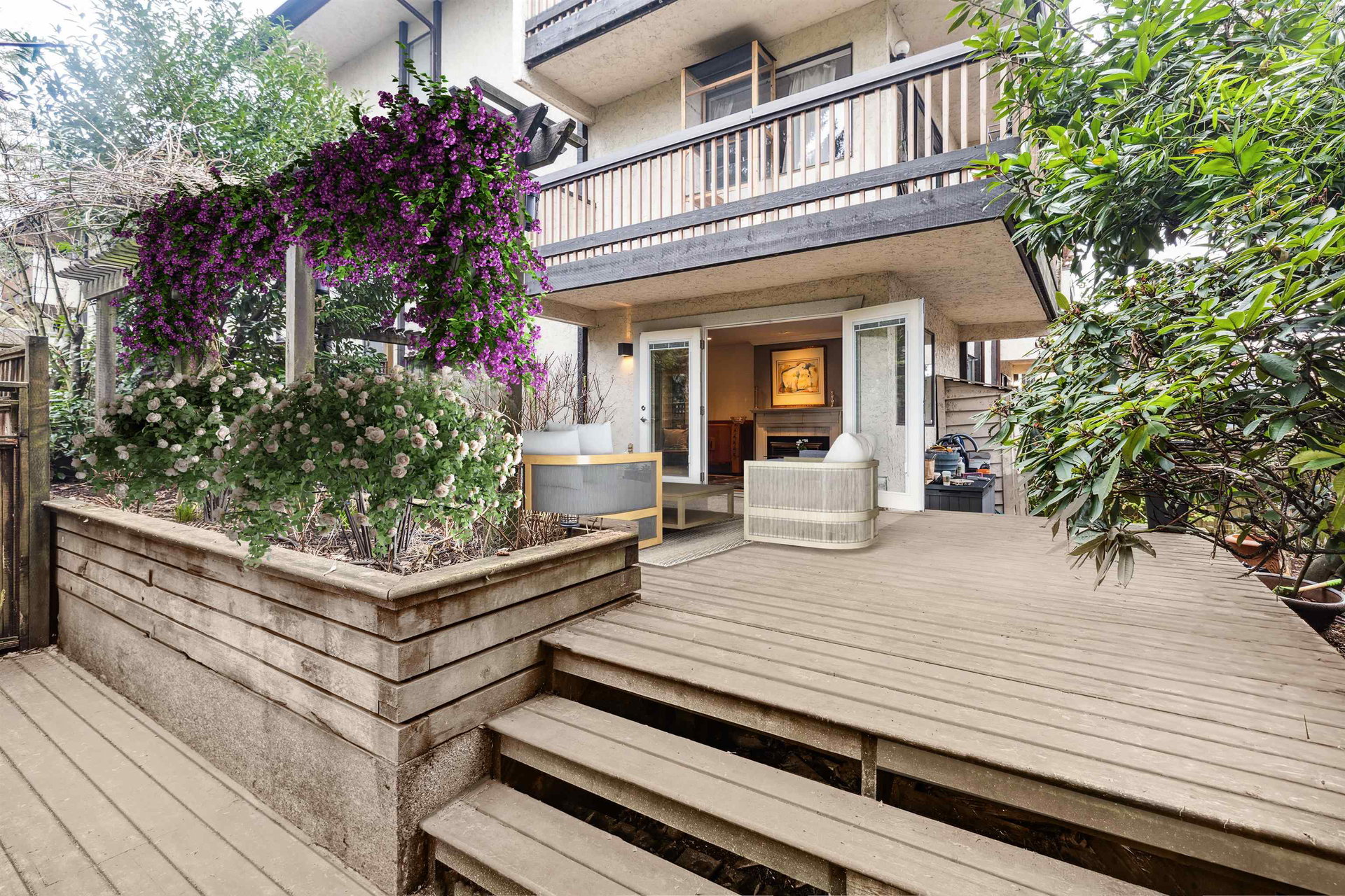 A condo that actually has it all? Act now as this suite is an extremely rare find for Sapperton, New Westminister and will not last long. This 1 bedroom, 1 bathroom condo has been meticulously cared for since its 2015 makeover. Tastefully designed to include the finer details that make living comfortable, spacious and luxurious in your very own condo at an affordable price. Step onto your entertainers patio through your wide open French doors, enjoy over 1100 SF of outdoor space. Start your mornings in your spa like 4 piece bathroom inc deep soaking tub, fully tiled shower with waterfall feature. Other luxurious features include custom arbutus closets, hardwood flooring, crown molding, open style kitchen with granite counters and in-suite laundry. Transit accessible, 13 minute walk to Braid & Sapperton stations. no dogs. 1 parking, 1 locker included.