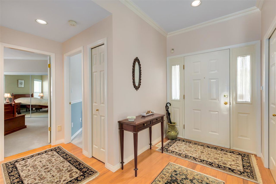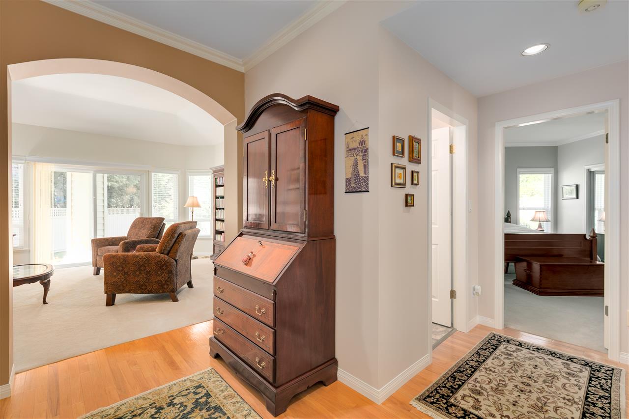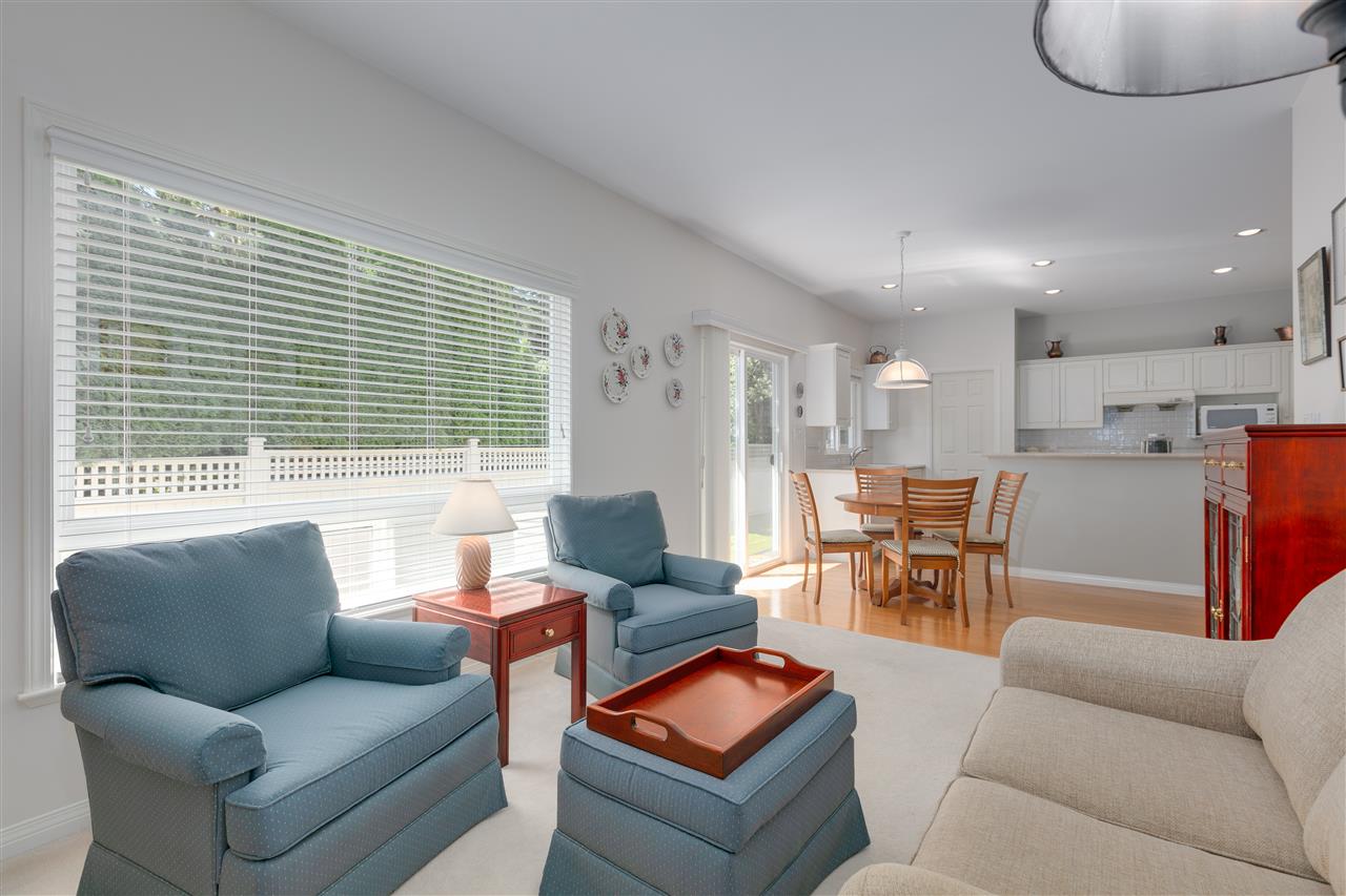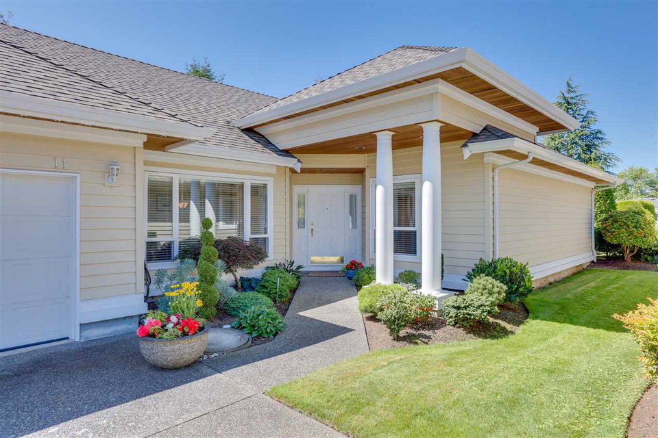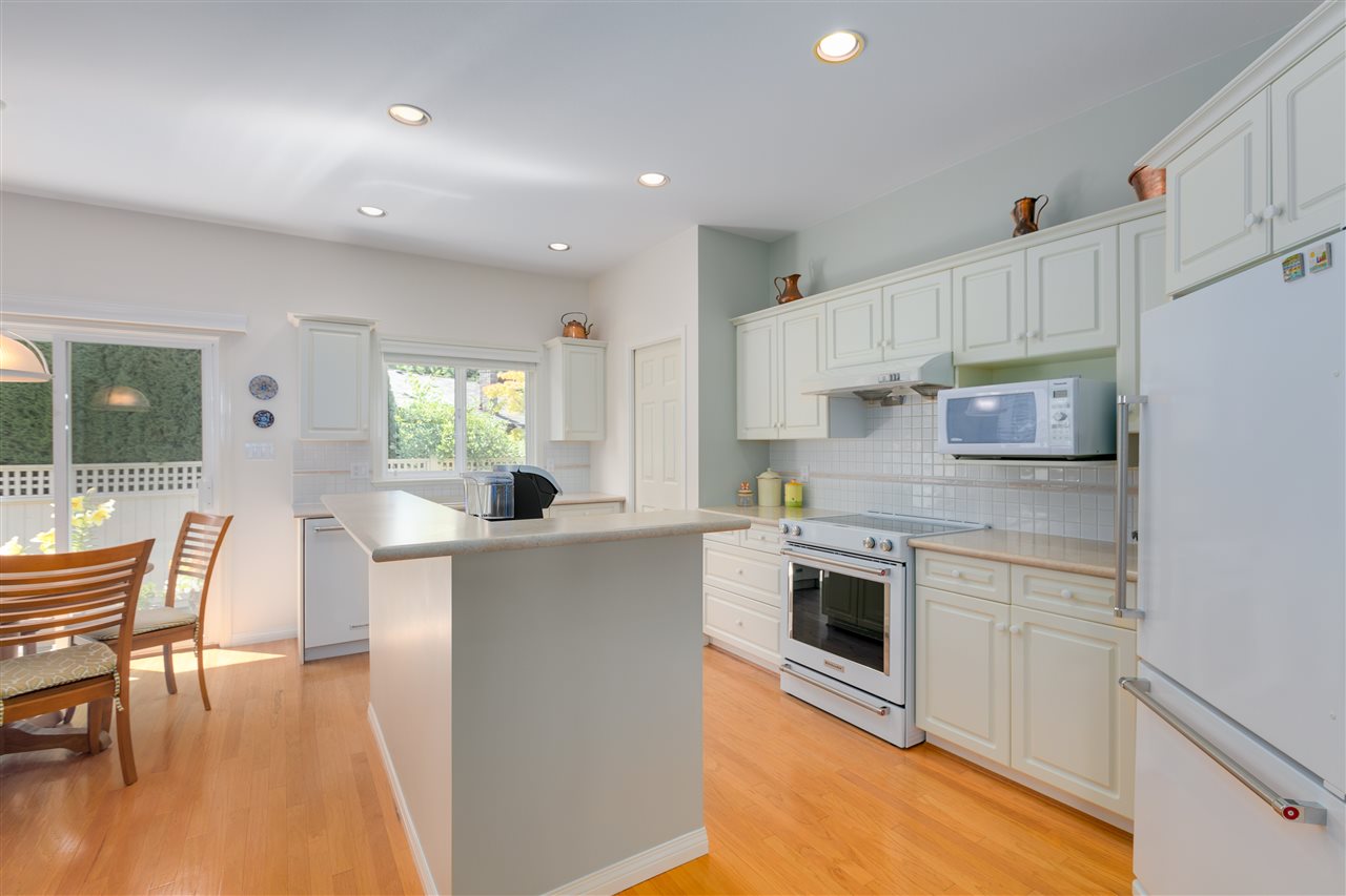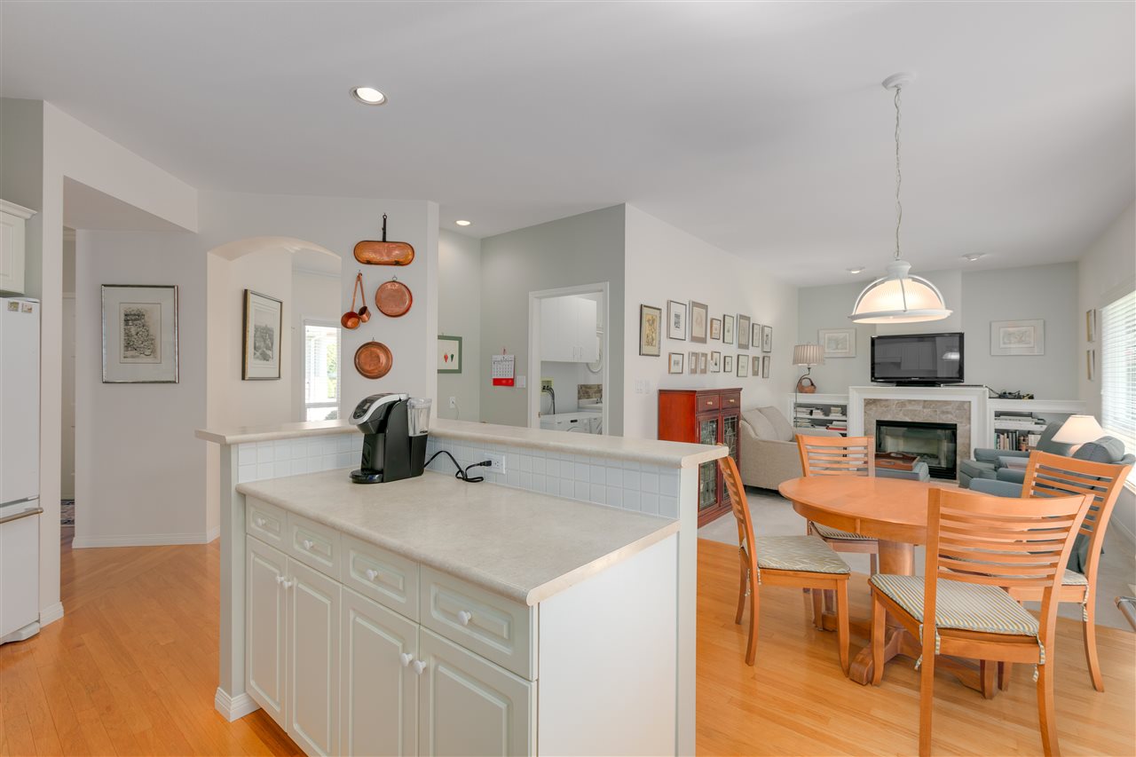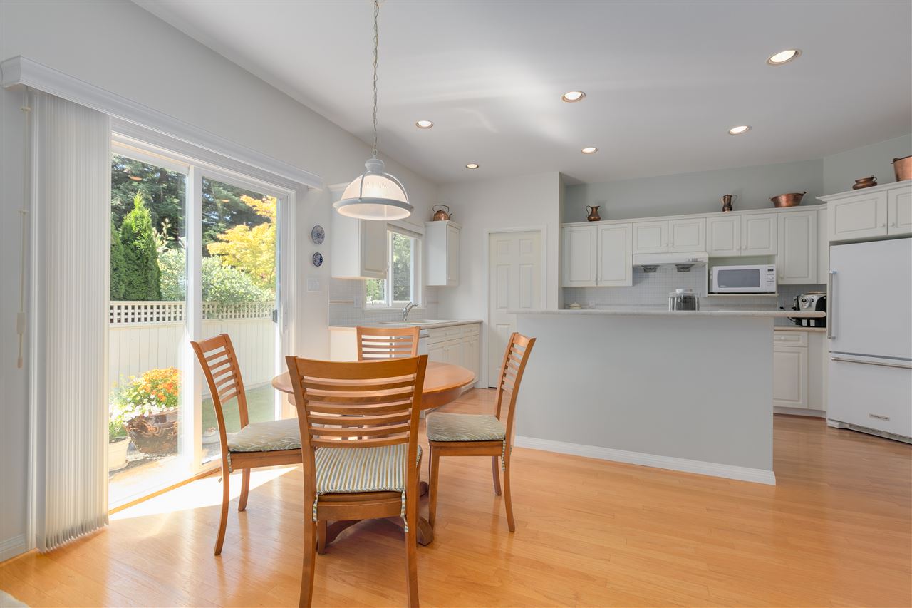 Deluxe DETACHED RANCHER townhome in sought after Brambley Hedge! This 2 bedroom home is located in the desirable southwest corner of the complex where 588 sq ft of outdoor patio space and gardens in the large and private yard soak up the sun. The impeccably maintained interior features oak hardwood flooring, formal dining and living rooms, 9ft ceilings & vaulted 10.5 ft living room ceiling, 2 gas fireplaces, large master bedroom with 4 pc ensuite. You’ll find ample cupboard & counter space, a pantry and upgraded appliances in the open concept kitchen. Newer roof and hot water tank. Double garage with additional parking. A short walk to Sunnyside Acres Urban Forest and Softball City. Centrally located near Semiahmoo Shopping Ctr, South Surrey Rec & Arts Ctr, parks and White Rock beach!