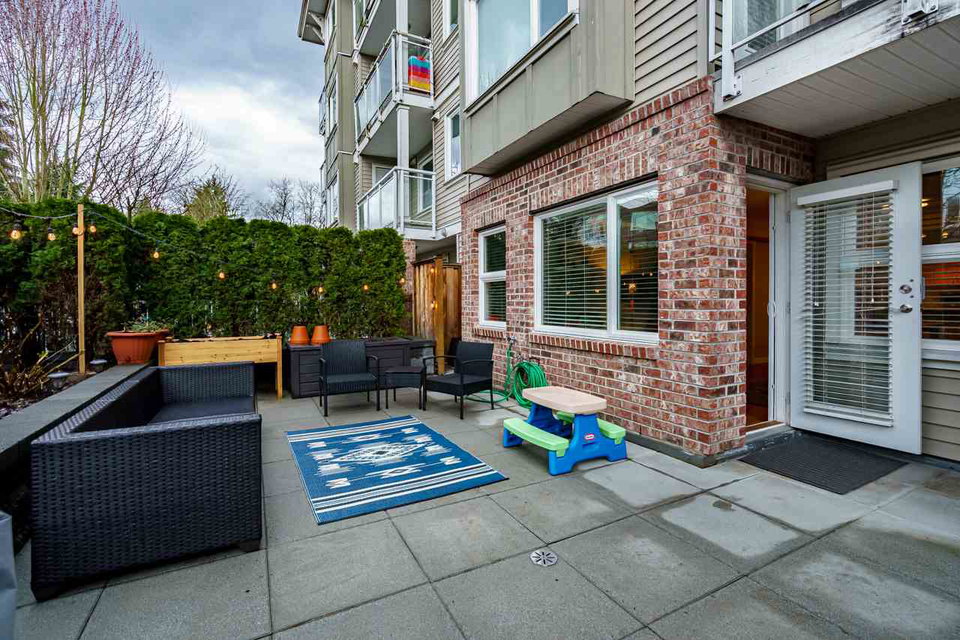Fantastic location for this well maintained 2 bedroom ground floor unit boasting a massive 402 sq ft private PATIO! this bright, open floor plan boasts a gourmet kitchen with high-end stainless steel appliances, granite counters, breakfast bar, maple shaker cabinets. Cozy living room with access out to extra large patio surrounded by privacy hedge. Perfect for BBQ’s! Bedrooms on opposite sides of living room for extra privacy. In suite storage, laundry and H/W tank. 2 Parking Stalls! Low maint fee, pets and rentals fully allowed! Great location! Close to Gates Park, the Traboulay trail along Coquitlam River, downtown Po Co amenities, shopping and restaurants, Terry Fox library, and the Westcoast Express. Walk to all levels of schools and the brand new Rec Centre.