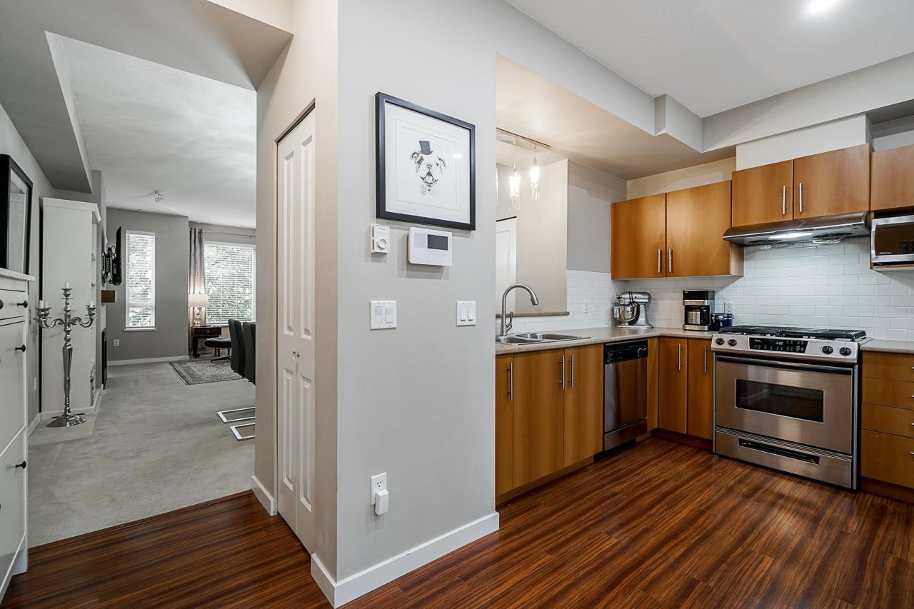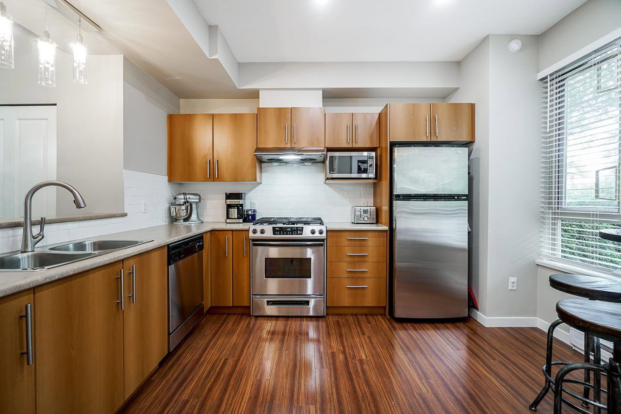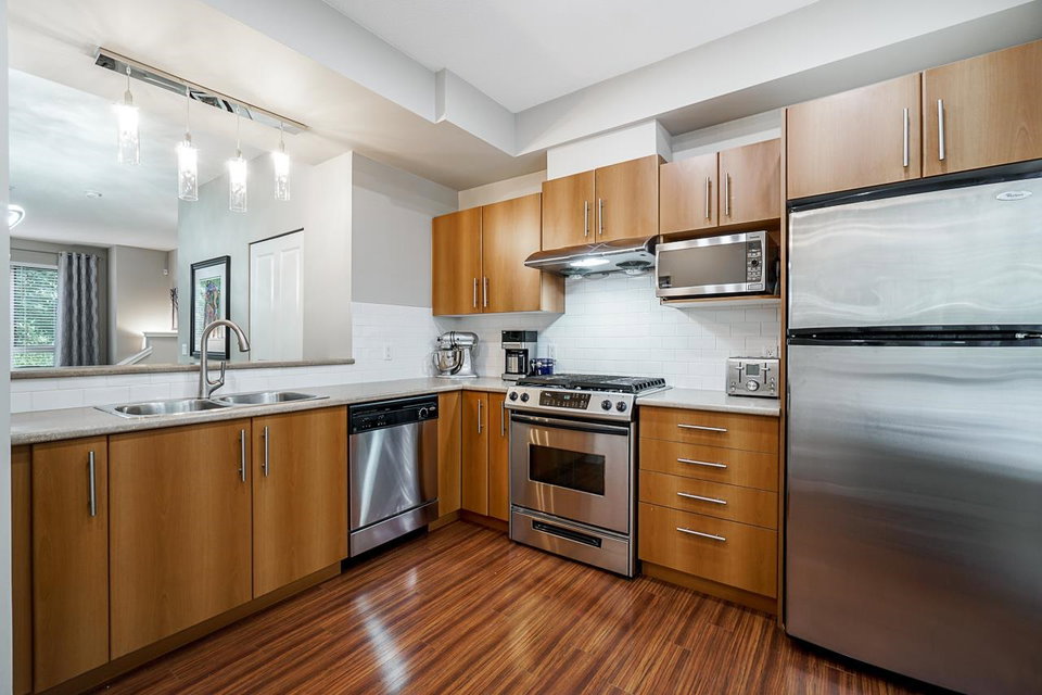 SFU Living at the Serenity! Featuring a two level townhouse with 2 beds and 2 baths on the upper level & the living, dining and separated kitchen on the main w gas (stove) included. One parking. New washer/dryer, light fixtures & all LED lights. Super convenient location, a short walk to Nesters Market, Tim Hortons, Starbucks, BC Liquor Store, A&W, Chopped Leaf and much more! Heart of Burnaby finest parks and trails; Barnet Park, Burnaby Mountain/Trans Canada/Velodrome Trails, Mountain Air Bike Skills Park & Bby Mtn Golf Course/Driving Range. Close to SFU Childcare Society, an amazing daycare for families, great for investors for rental potential and perfect for students or professors attending SFU. School catchments are University Highlands Elementary (K-7) & Bby Mountain Secondary (8-12)
