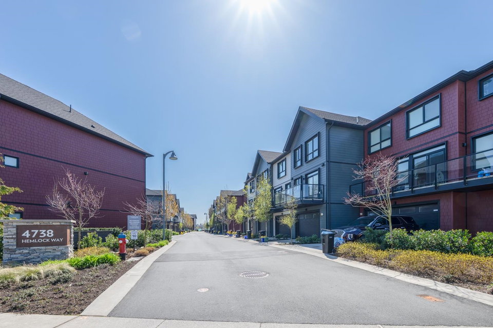 Like new & no GST! This stunning south-facing townhome at Tsawwassen Landing is the perfect family home, featuring 3 bedrooms, 3 bathrooms and access to the best amenities center in the Lower Mainland. The bright, open-concept main floor boasts 9-ft ceilings, a spacious living area, powder room, and a sleek modern kitchen with gas stove, oversized island, and balcony. Upstairs offers 3 bedrooms and 2 full baths. Enjoy resort-style amenities including a pool, hot tub, sauna, steam room, tennis court, gym, co-working space, BBQ area, and entertainment lounge. Just steps from Tsawwassen Mills, South Pointe Academy, recreation, and golf.