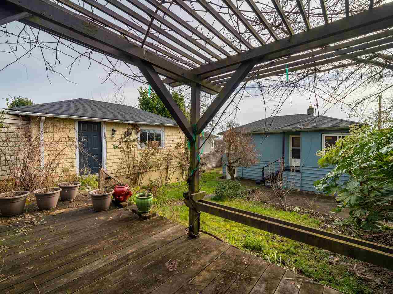 Welcome to this well cared for West End home. A landscaped front yard sits atop a river rock retaining wall welcoming you to the front of the home with a view of the Fraser River, New West Quay & Mt. Baker. Inside, wood flooring with herringbone inlaid oak detail throughout the main flows to meet the tile kitchen floor. Corner windows keep the sun pouring in at every angle. A bright eat-in kitchen has newer stainless steel appliances. Downstairs offers a large master bedroom & gas fireplace next to a renovated full bathroom with a soaker tub. A second bedroom steps away, & around the corner a quiet den area sits close to the new basement door to the private fully fenced back yard. A quiet paved stone patio framed with mature hedging provide for an oasis in the city. Lane access to a single car garage. High efficiency furnace, newer carpets, 9 year old roof with a 35 year warranty & 9 year old drain tile system & sewer line. The garage was reroofed in 2018. 3D virtual tour at Realtor’s site.