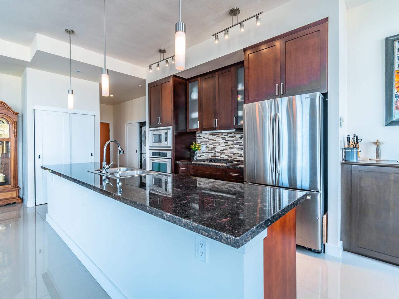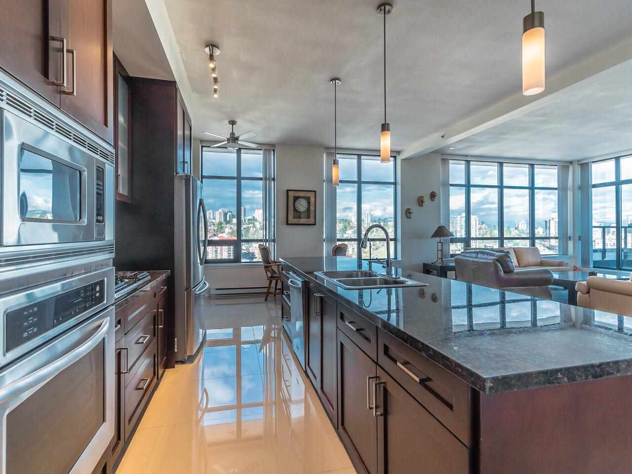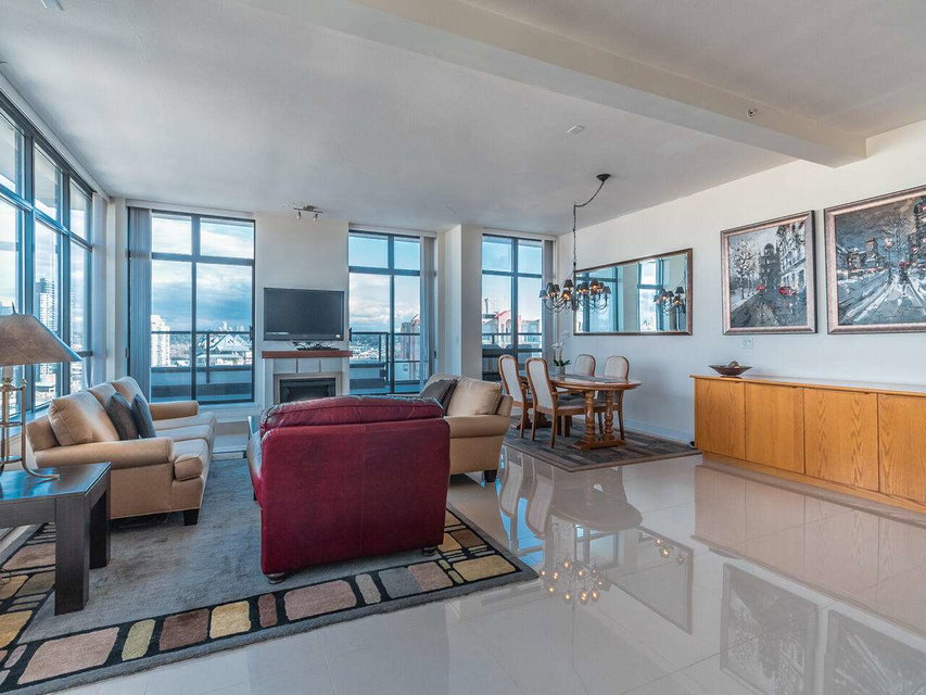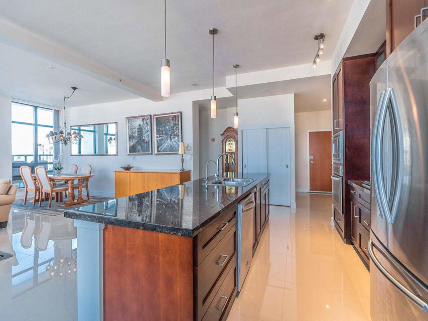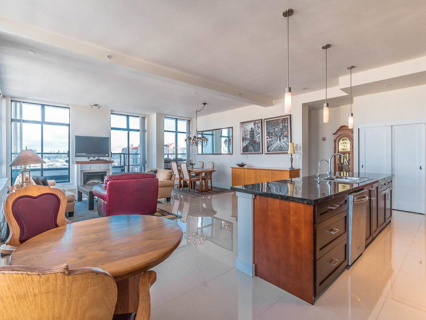 LIVE at the TOP or the WORLD in an ENTERTAINER’S DREAM PENTHOUSE at THE Q! From the second you walk onto the most AMAZING floors you will have ever seen, you will also feel the PHENOMENAL ENERGY and AMBIANCE that very few places can ATTAIN! From the SOARING CEILINGS, to the MASSIVE kitchen island, to the gas stove and MILLIONS of TOWERING floor to ceiling WINDOWS, this HOME has it all! VIEWS from the deck and allover. Two bedrooms, two bathrooms, two PREMIUM parking stalls and one HUGE locker! Two dogs (up to 55 lbs) or two cats with rentals allowed! The Quay is a second to none location with everything you can ask for at your doorstep and just keeps getting better! Not many chances come around like this so its not one you want to MISS!