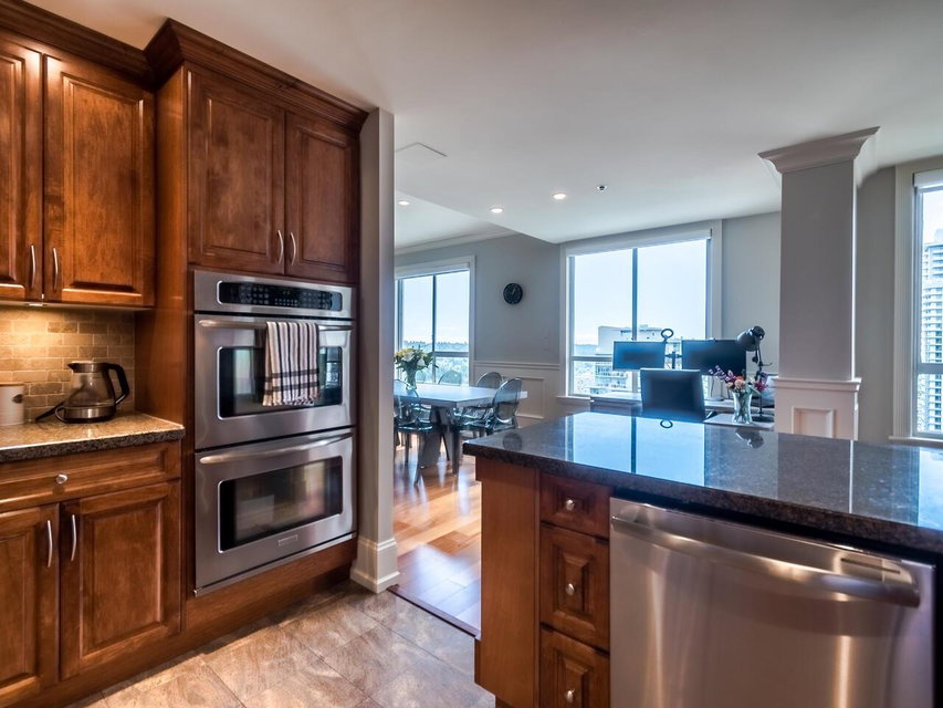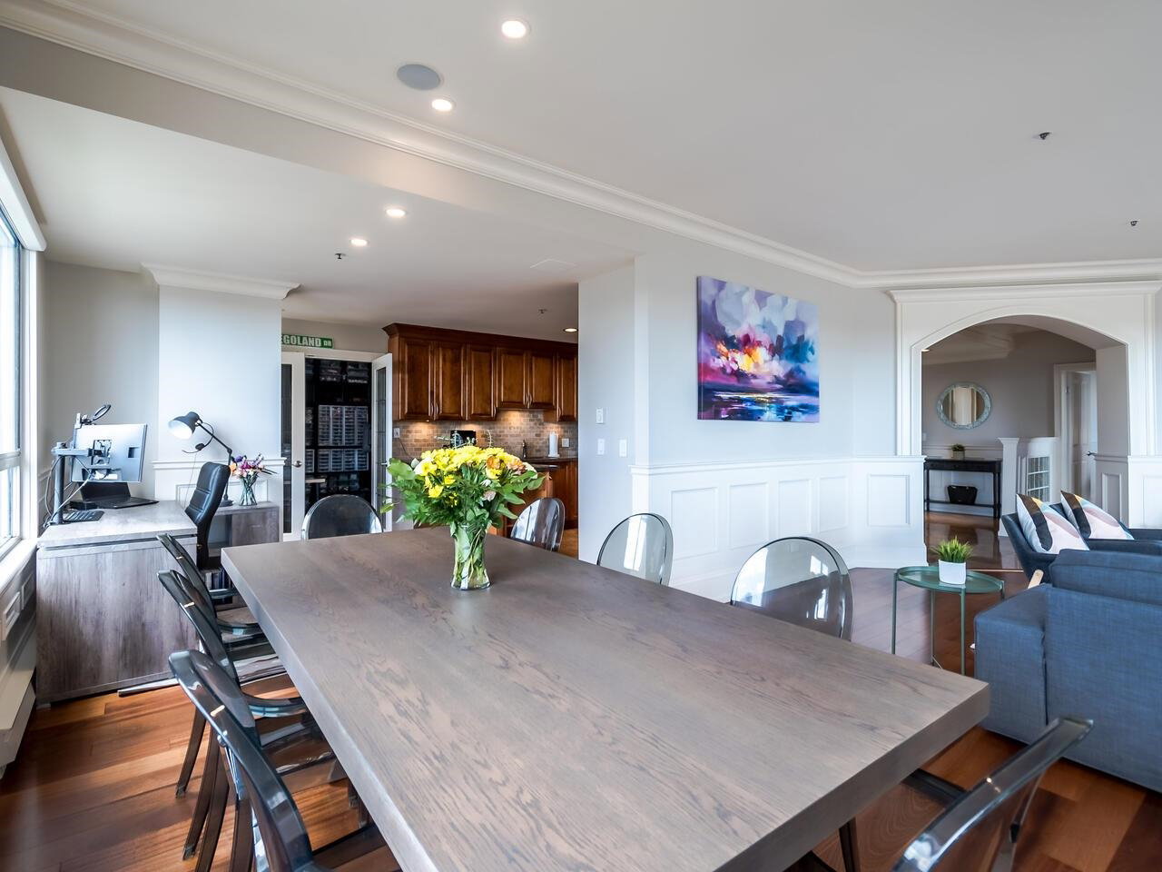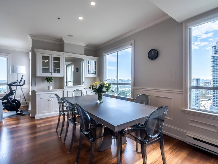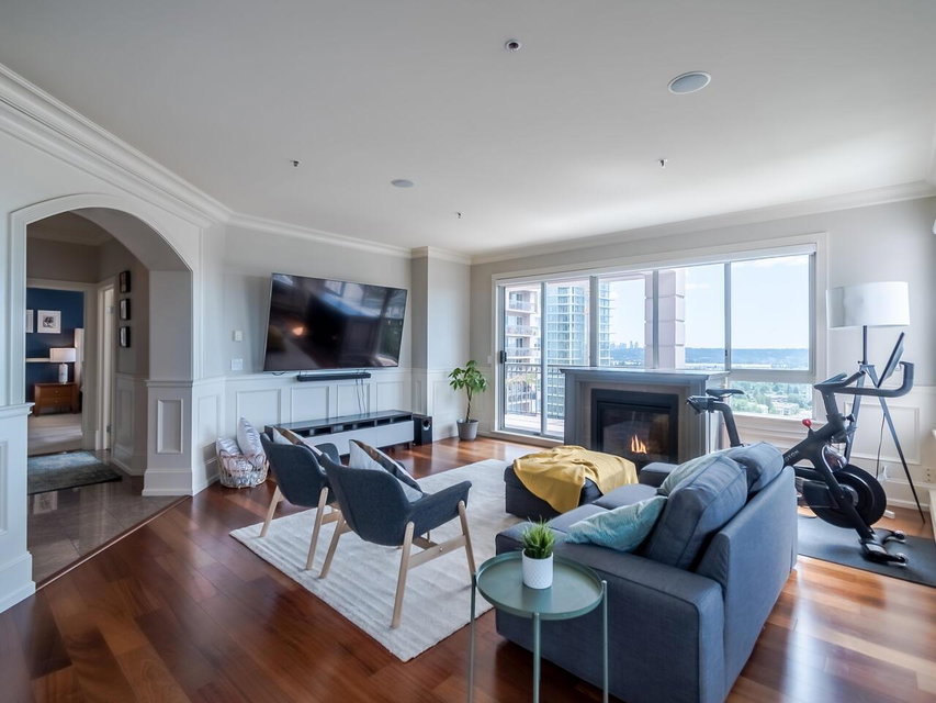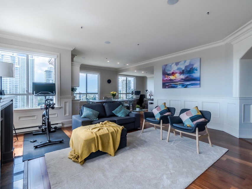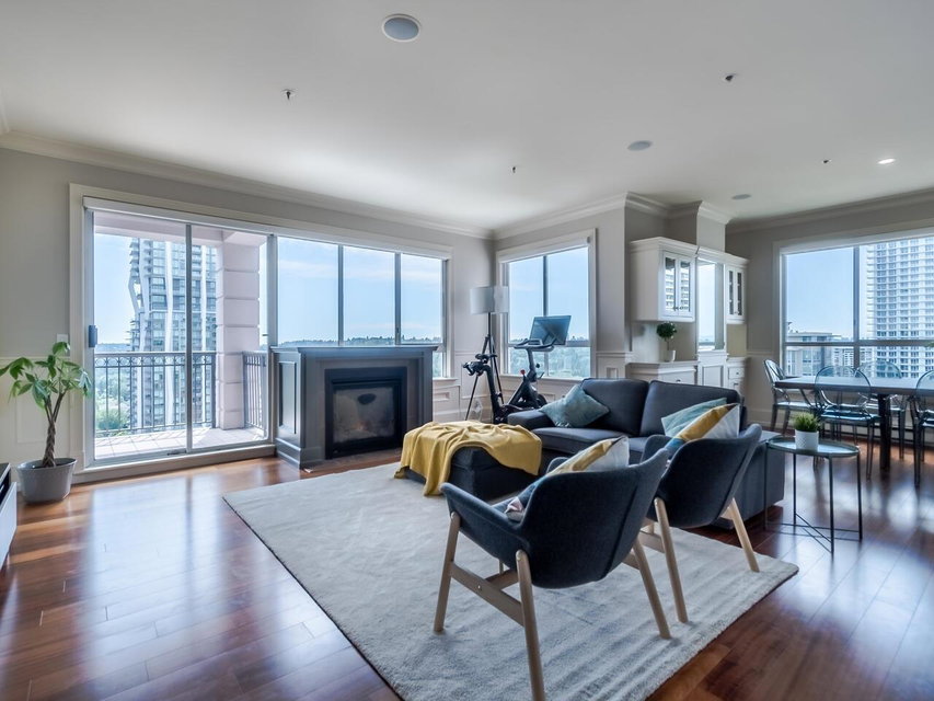 Imagine living in a PALACE in the SKY that’s LARGER than most HOMES with a maintenance fee that’s AMAZING for a GEM this MASSIVE! This LUXURIOUS PENTHOUSE has a PHENOMENAL layout with RICH finishings and an AMBIANCE that would make any owner OOZE with PRIDE! Four bedrooms (2 without closets), two full bathrooms (one even has two showers), two decks, GAS fireplace, HARDWOOD floors, NEW carpet in the bedrooms, two parking stalls & a locker are just a few things to note! PANORAMIC VIEWS from EVERYWHERE on the BEST corner of the BEST located building from the LARGEST suite in this well run complex! RARELY, do you walk into a place this GRAND and get the VIBES very few can! CONVENIENT as can be with everything at your doorstep and skytrain a block away! Rentals allowed and one dog up to 26lbs!