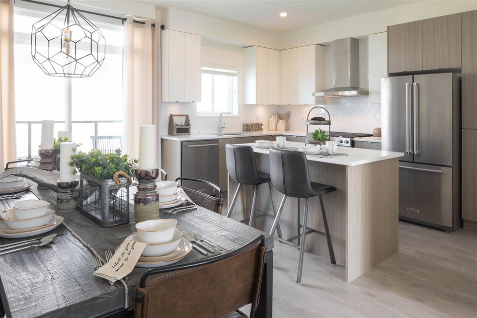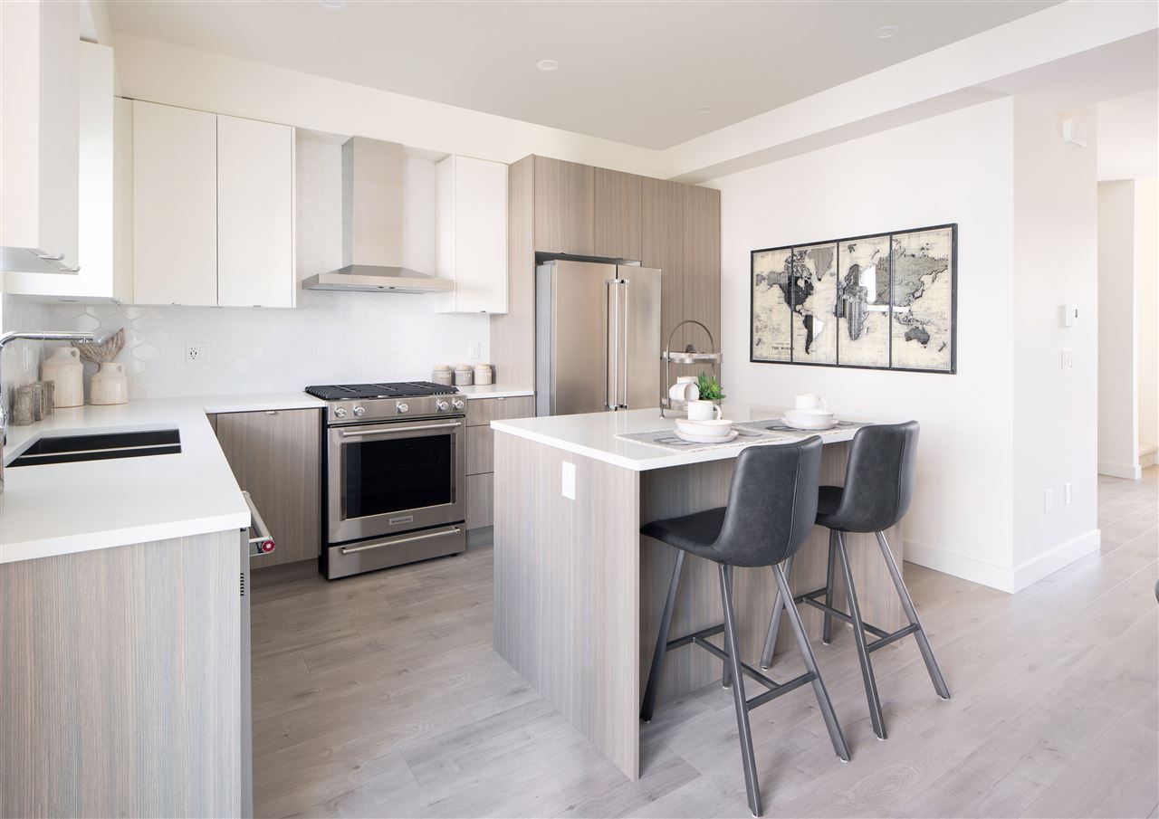 This stunning and spacious 3-bed home at Luxia at Yorkson is close to schools, shopping, restaurants, everything! Relax in your huge master bedroom with walk-in closet and ensuite bathroom with his & her sinks and frameless glass shower. You will love prepping in your kitchen with an island, quartz countertops and KitchenAid appliances. This home is modernly designed with details such as herringbone tile on the main floor powder room, wide-plank laminate flooring and a geometric kitchen backsplash. Resident-only Club House includes a fitness studio and social lounge. Enjoy your community with water features, green spaces and kids play area!