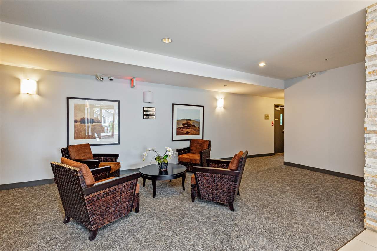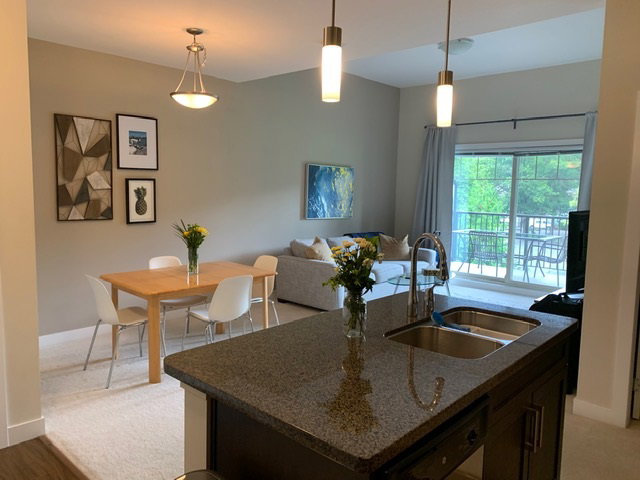 The Gallantree…. Top floor unit looking onto the peaceful private park. The awesome open floor plan offers 11′ vaulted ceilings in the main living area and 9′ in the balance. Shaker style cabinets with granite counter tops and under mount sinks and tiled back splash. Stainless steel appliances and a brand new washer and dryer. The out door balcony is a generous size. This well keep and run building allows pets, rentals and no age restriction. Walking distance to shopping, pubs and restaurants.