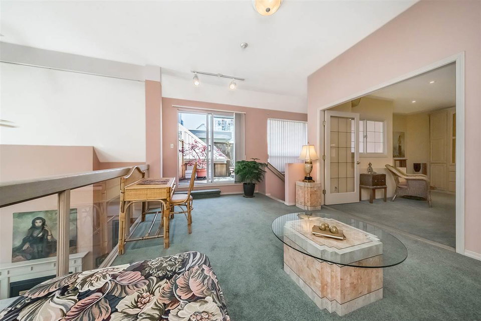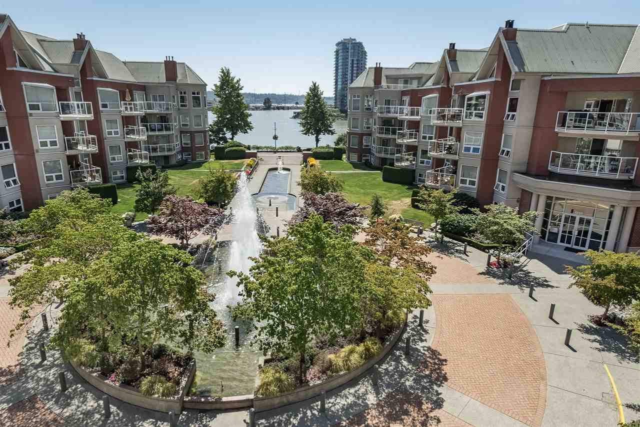 Tiffany Shores at The Quay. Riverfront PENTHOUSE. Double doors enter you into this, 2 bedroom and den. This amazing END UNIT, is facing The Fraser River. Watch the boats in the morning with coffee, overlooking the SPECTACULAR COURTYARD with water fountain from the main floor deck. It’s The Bellagio. This penthouse features 20 ft soaring cathedral ceilings with transom windows, making it a SUPER BRIGHT unit. Second floor loft/library, with private den leads to PRIVATE ROOFTOP DECK Huge master bedroom (16′ x 15′) Over-sized kitchen with tile flooring and back splash stainless steel appliances double S/S sink oak cabinets, built in breakfast eating area. 2 decks. Tile hearth and Bleached Oak mantle gas fireplace. Steps to the boardwalk, 5 minute walk to Quay Market, The Boathouse, Sky-Train.
