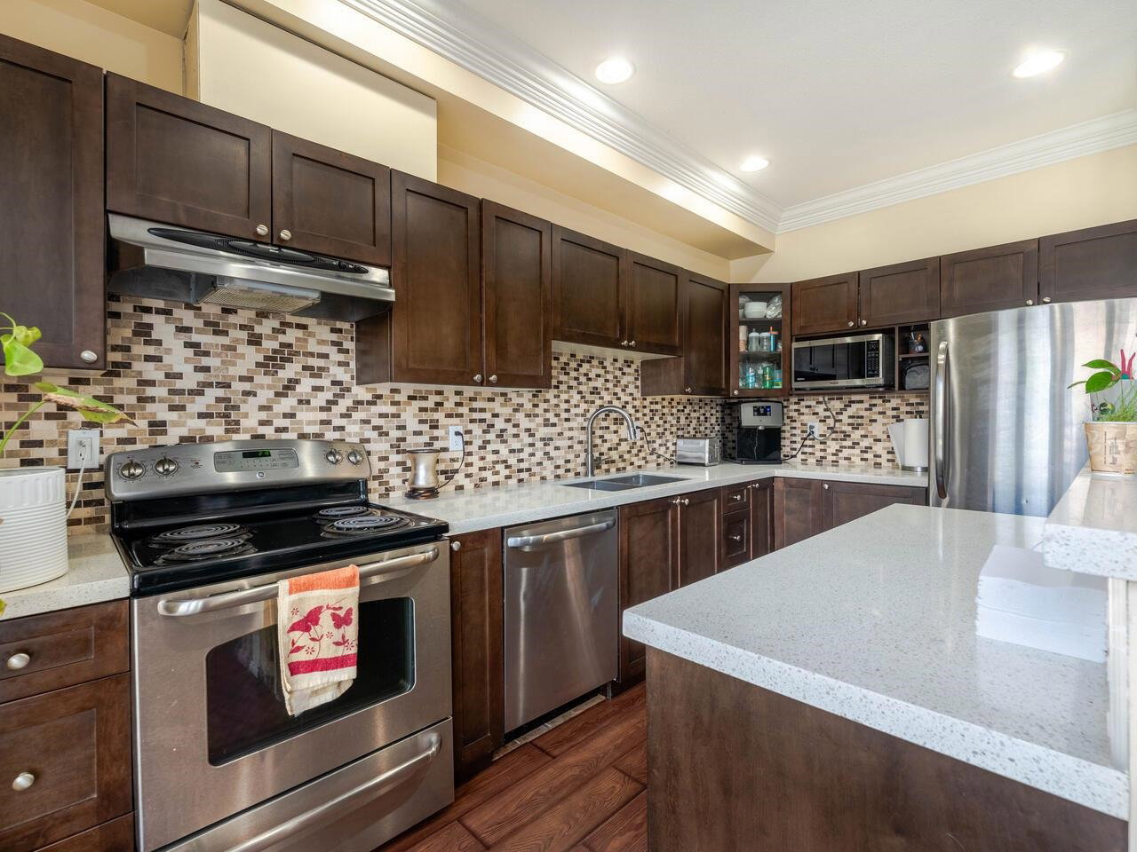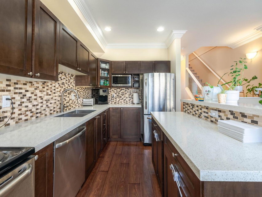 STUNNING 3 bedroom, 2.5 bathroom townhouse in the BEST location within Eagle Crest Estates which is in the BEST location in Queensborough! RARELY do homes ever come on in this QUALITY, LUXURY built complex! AWESOME west facing backyard that is a stone’s throw from the Fraser River! TONS of upgrades done from GORGEOUS stone kitchen counters, BEAUTIFUL flooring, S/S appliances, bathroom updates and so much more and was also just FRESHLY painted! EXCELLENT layout with such wants like a half bathrooms on the main floor, all three bedrooms up with two full baths as well as the laundry and a MASSIVE garage with the end of it currently used as a gym! QUIET and SERENE area as you can walk right out your door and be on the trail along the river yet still be close to everything one needs! Be quick!