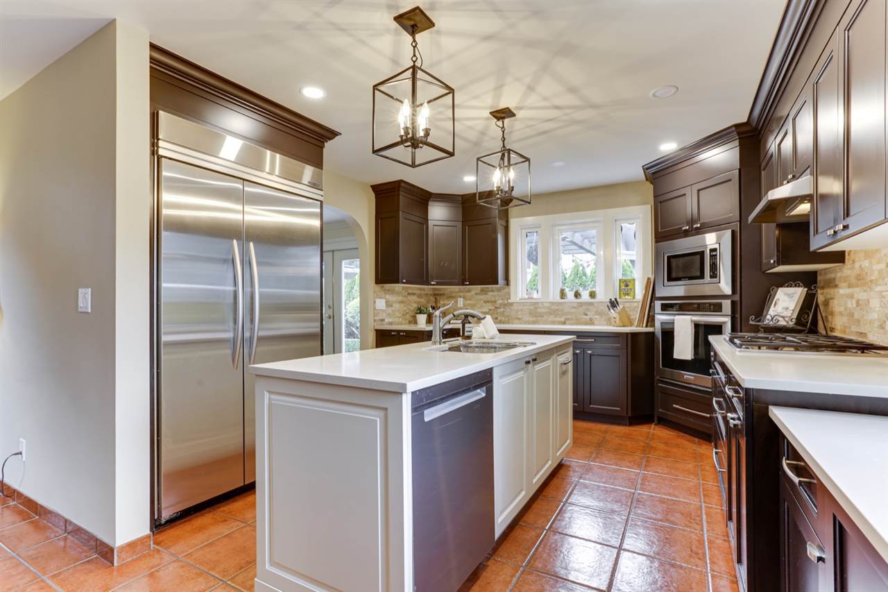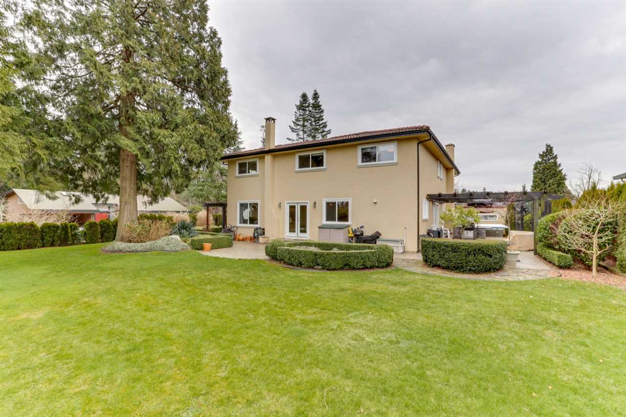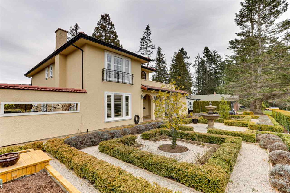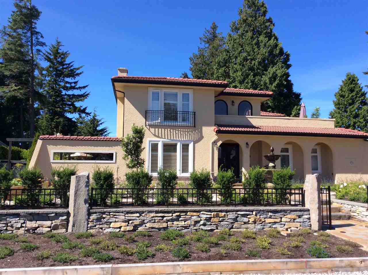 PEBBLE HILL – beautifully renovated 4 bed Spanish style villa on private, SUNNY professionally landscaped 13025 sq ft lot on quiet & desirable street!Outstanding ‘curb appeal’ with gated entry & exquisite gardens!Updated kitchen with entertainment sized island has French doors to private patio & is open to family rm with stone feature f/p. Elegant living rm with cast stone surround f/p opens to spacious dining rm with French doors to private west patio & outdoor kitchen & pergola – great outdoor living space! Features incl H/W flooring, extensive millwork, flattened ceilings, California shutters & updated bathrooms, irrigation system. ‘Move in ready’ home ideal for entertaining with space for home office & gym. Steps to school & beach. Sunny T – minutes to YVR, city, border & ferries.