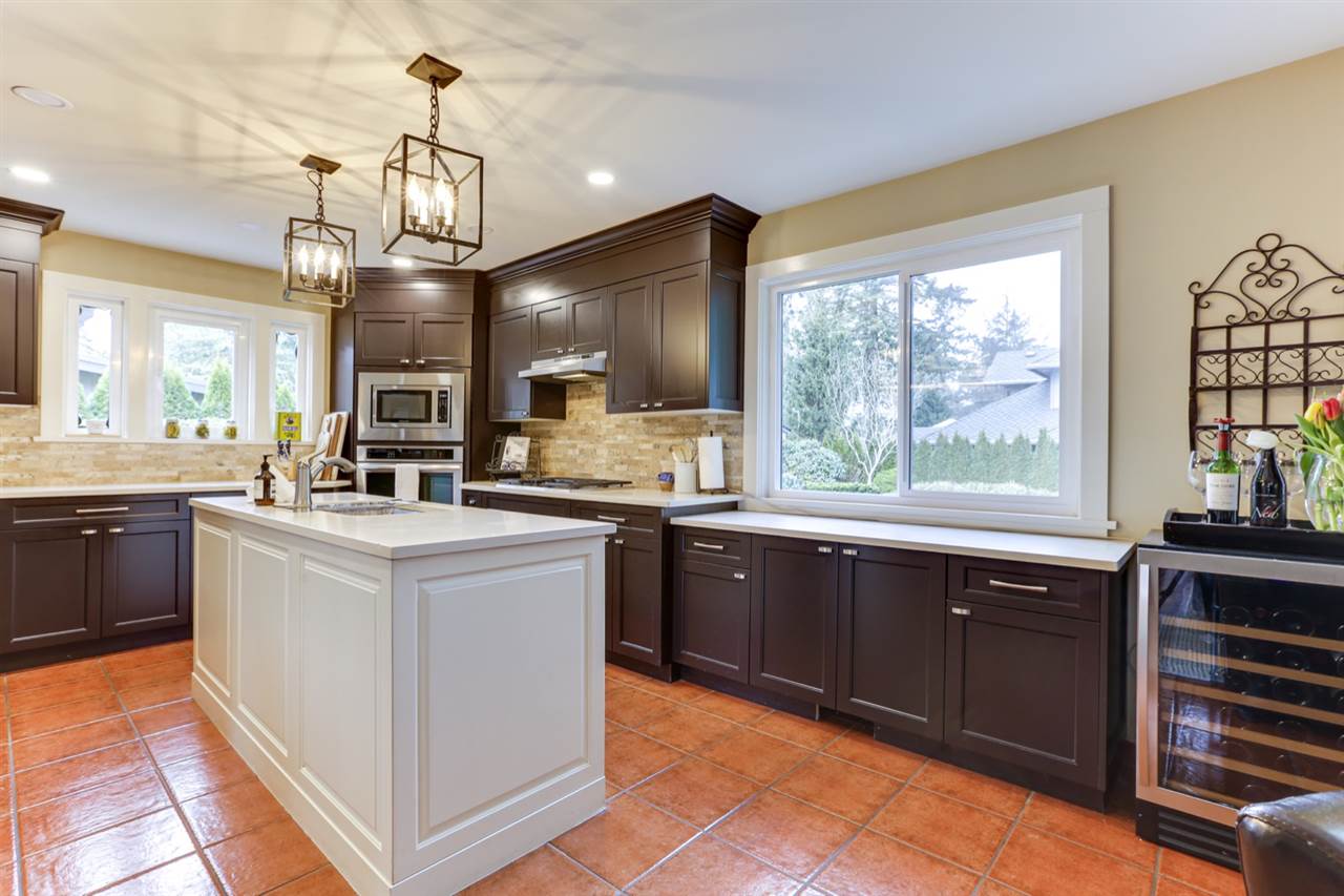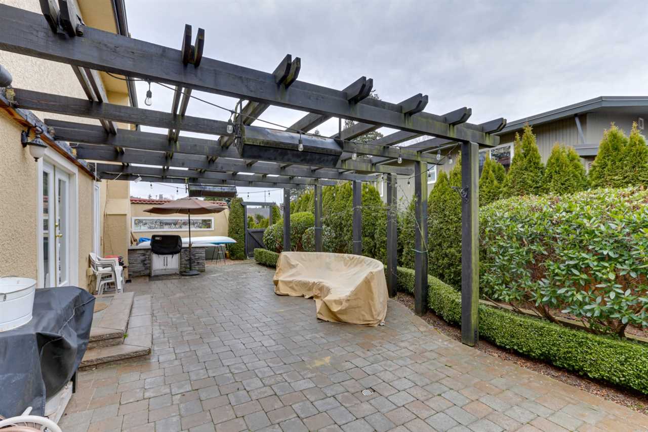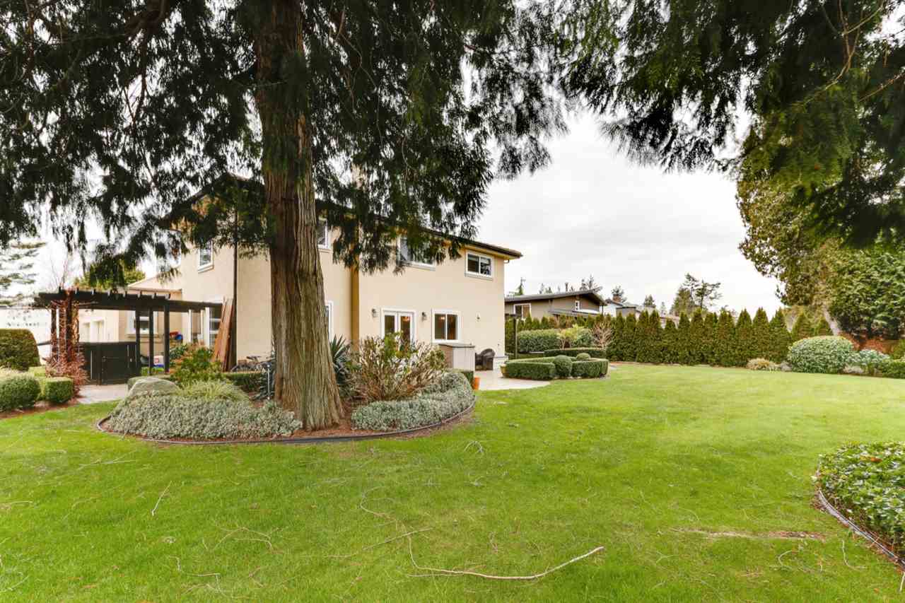 PEBBLE HILL – beautifully renovated 4 bed Spanish style villa on private, SUNNY professionally landscaped 13025 sq ft lot on quiet & desirable street!Outstanding ‘curb appeal’ with gated entry & exquisite gardens!Updated kitchen with entertainment sized island has French doors to private patio & is open to family rm with stone feature f/p. Elegant living rm with cast stone surround f/p opens to spacious dining rm with French doors to private west patio & outdoor kitchen & pergola – great outdoor living space! Features incl H/W flooring, extensive millwork, flattened ceilings, California shutters & updated bathrooms, irrigation system. ‘Move in ready’ home ideal for entertaining with space for home office & gym. Steps to school & beach. Sunny T – minutes to YVR, city, border & ferries.