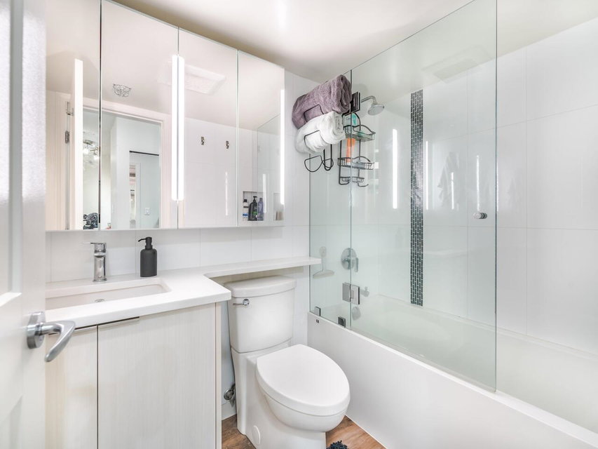 The HISTORIC downtown that’s becoming THE MODERN downtown FULL of LIFE, festivals and events all on the MAJESTIC Fraser River! Anything you can think of right outside your door including the skytrain! This STUNNING, FULLY renovated with no expense spared one bedroom and den HOME has that PERFECT feel and AMBIANCE and is sure to IMPRESS! GORGEOUS kitchen with high end S/S appliances, stone floor to ceiling gas fireplace and a PHENOMENAL looking cheater ensuite bathroom are just a few things to mention! AWESOME, PERFECTLY maintained building in a location second to none that allows the single hardest thing to FIND in a STRATA which is up to TWO DOGS with a total combined 100 lb weight limit! This is ABSOLUTELY an AWESOME HOME that you don’t want to MISS!