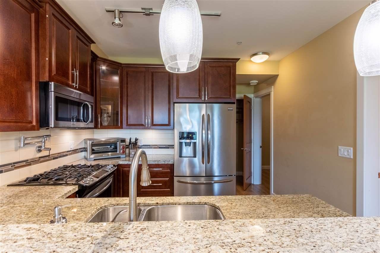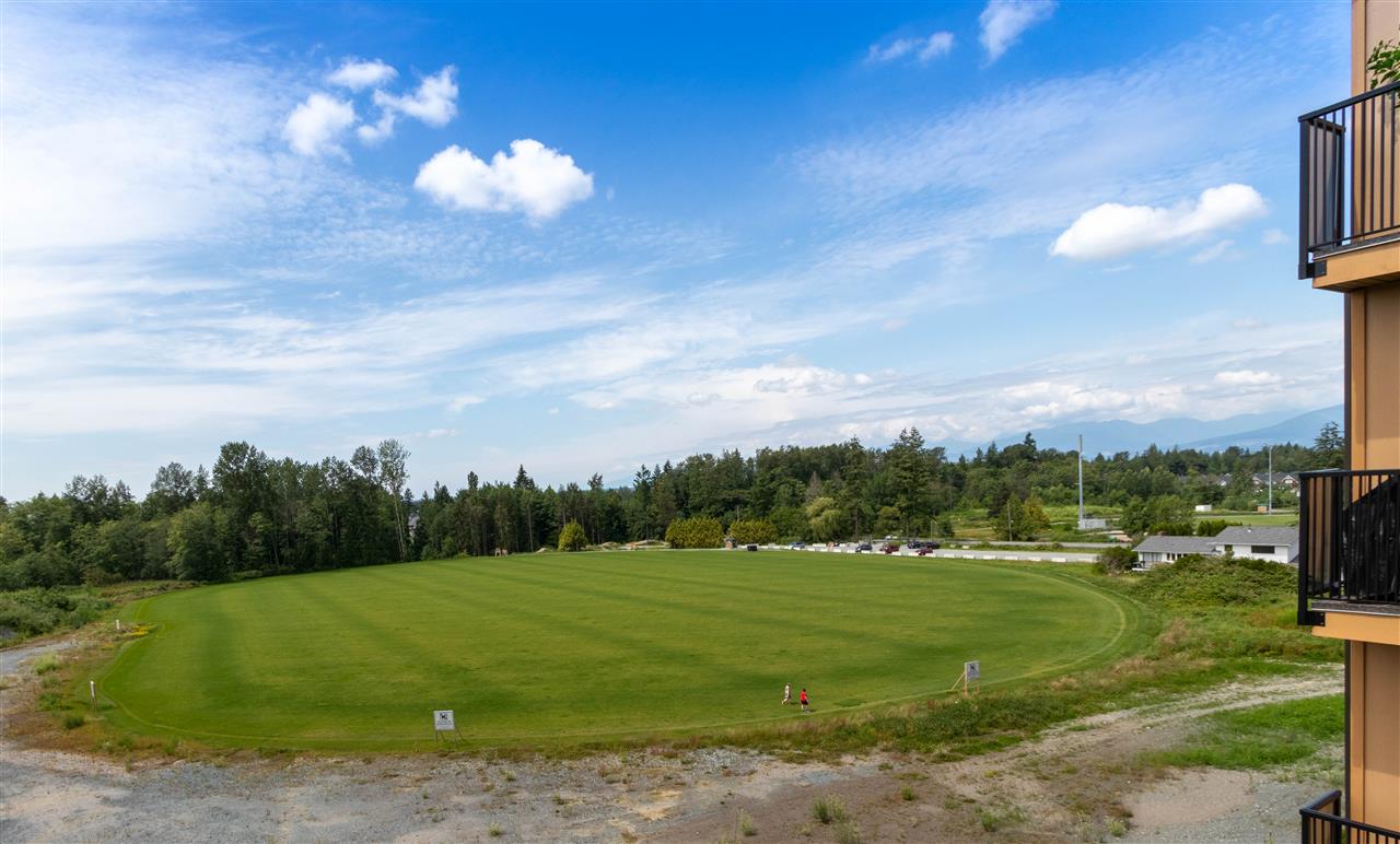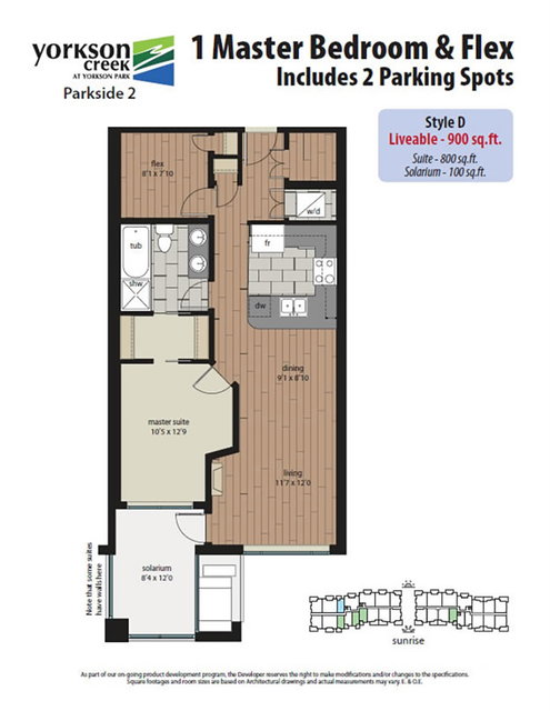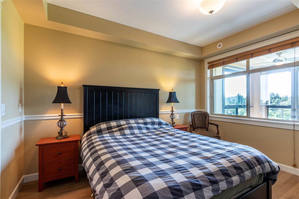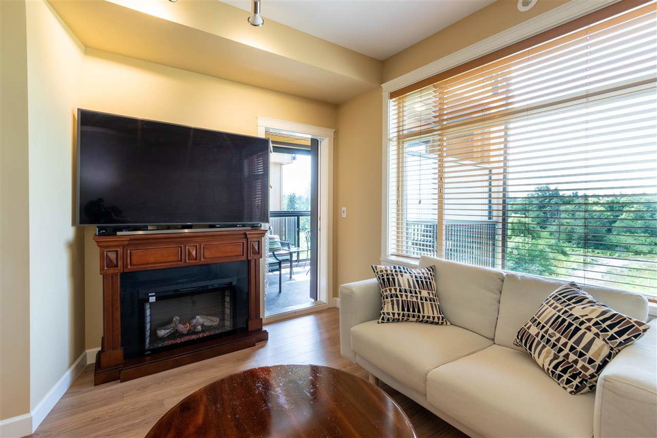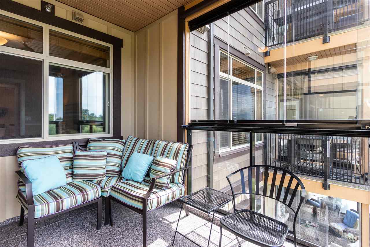 Wow! Check out this fantastic 5th floor 1 bed plus large den (makes 2nd bedroom in a pinch) located on the quiet side of the building with view overlooking the park! Awesome outlook! Sought after Yorkson Creek development offers quality finishing and features like heated bathroom floors, in suite storage, Air Conditioning and enclosed solarium with gas BBQ hookup. Cable, Internet, Hot Water and Gas are included in the low strata fees. Close to schools, Entertainment and Shopping. UNBELIEVABLE PRIVATE VIEWS FROM BALCONY! Quick possession available. View the 3D Immersive tour, then make an appointment to view!