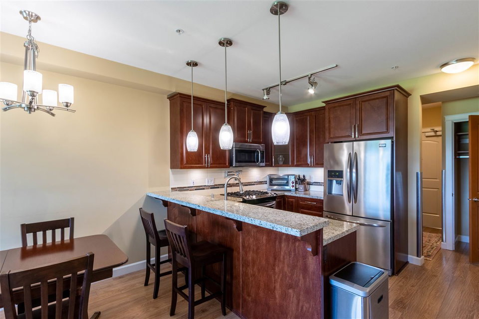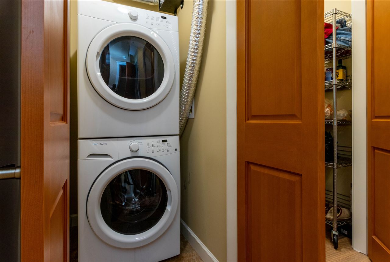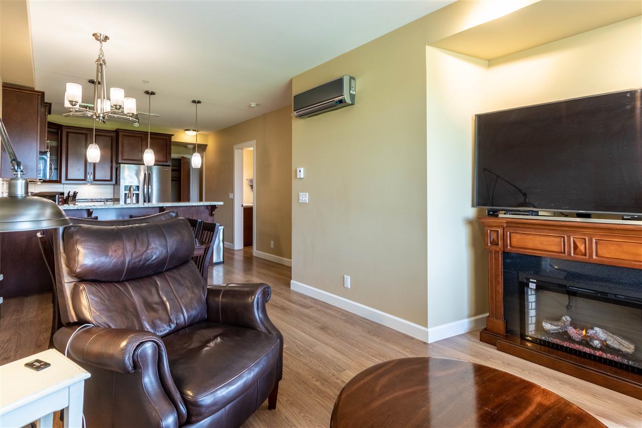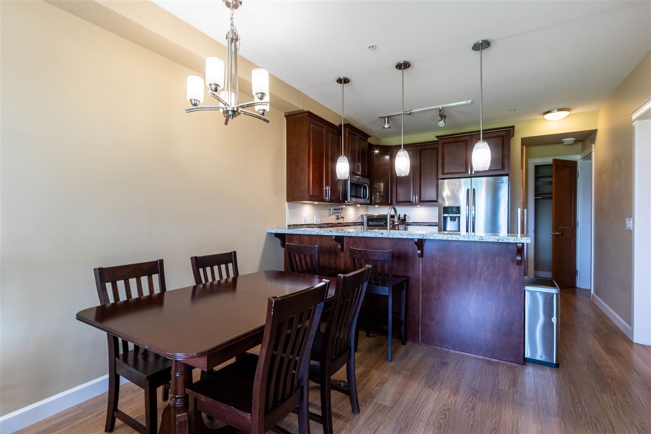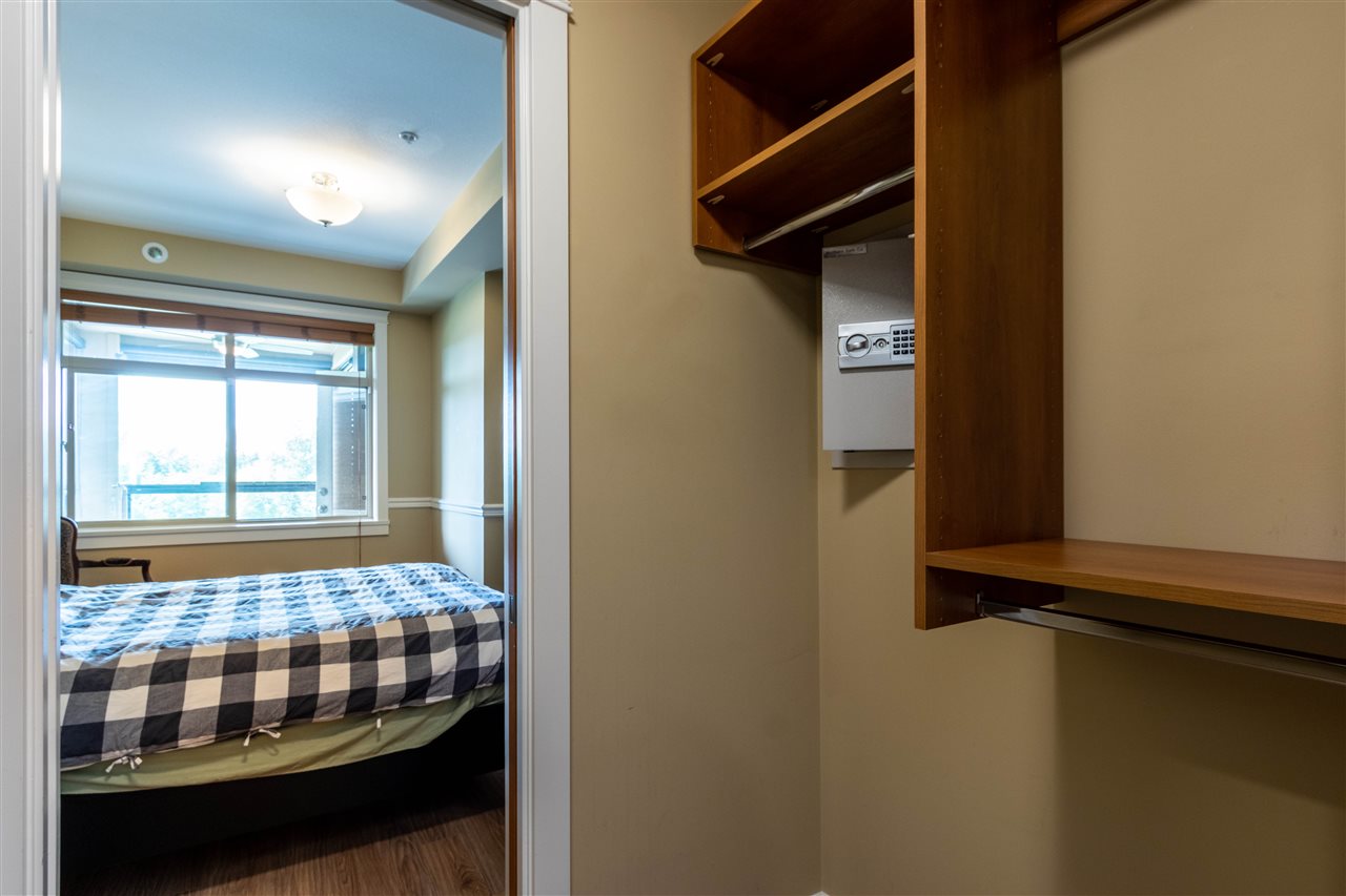 Wow! Check out this fantastic 5th floor 1 bed plus large den (makes 2nd bedroom in a pinch) located on the quiet side of the building with view overlooking the park! Awesome outlook! Sought after Yorkson Creek development offers quality finishing and features like heated bathroom floors, in suite storage, Air Conditioning and enclosed solarium with gas BBQ hookup. Cable, Internet, Hot Water and Gas are included in the low strata fees. Close to schools, Entertainment and Shopping. UNBELIEVABLE PRIVATE VIEWS FROM BALCONY! Quick possession available. View the 3D Immersive tour, then make an appointment to view!