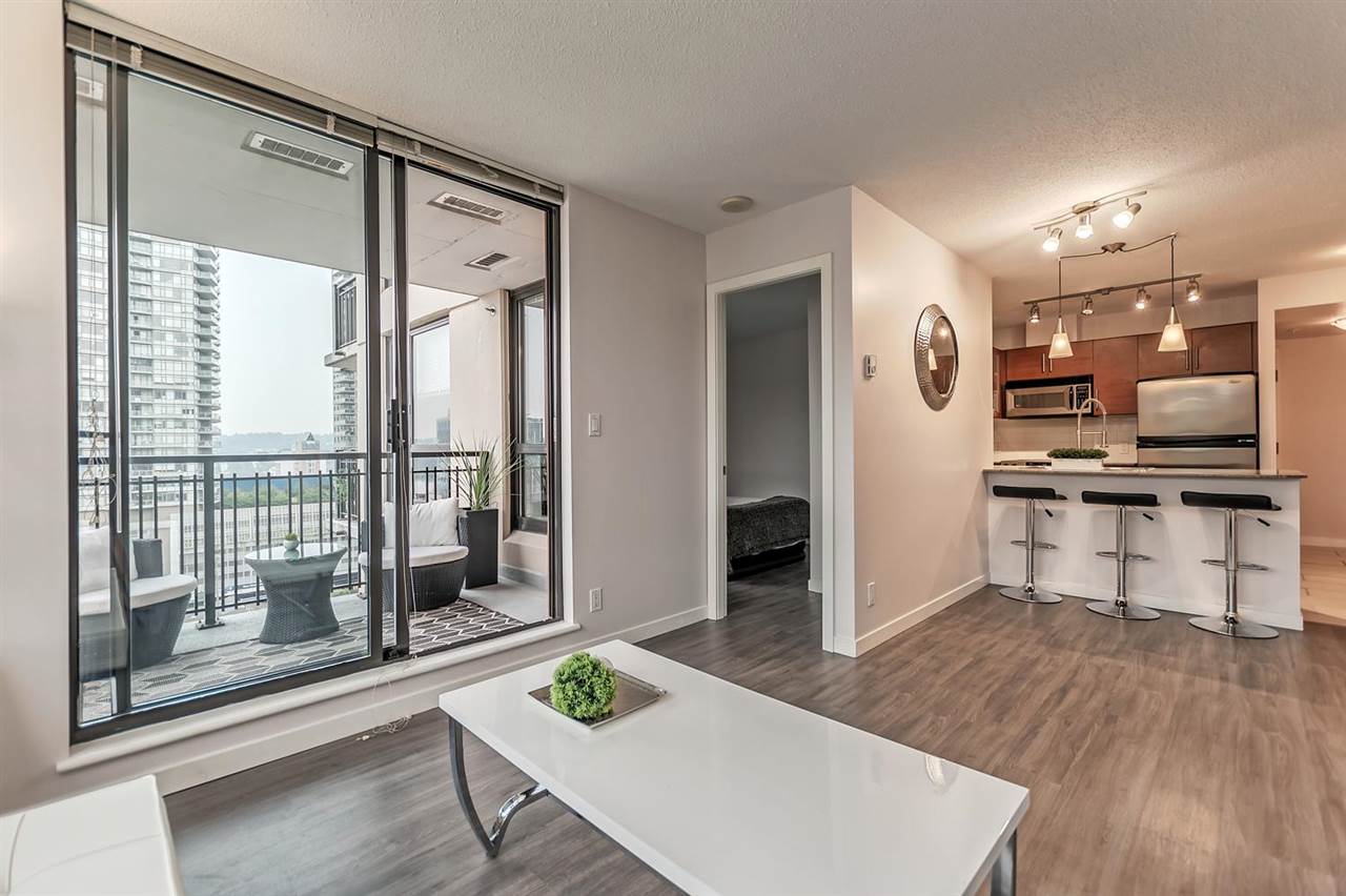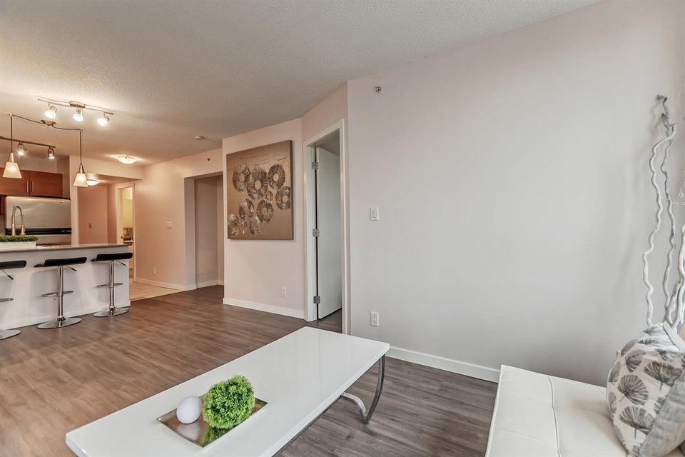 Not only do you have TWO bedrooms in the IDEAL type of layout on opposite sides of the living space, TWO STUNNING four piece bathrooms but you also get TWO GOLDEN parking stalls!!! Which happen to be the best one’s in the complex also!! This BRIGHT floor plan with BRAND NEW gorgeous laminate flooring, FLAWLESS paint, S/S appliances in an open concept looks like it’s brand new! Sit on the BEST facing side of the building on your GENEROUS sized DECK and take in some STUNNING VIEWS of the river and city! Pretty hard these days to find a home that checks off all your boxes for under 500k in a GOOD complex! Also allows one cat or dog with no size restrictions and rentals allowed! This is one not to MISS!