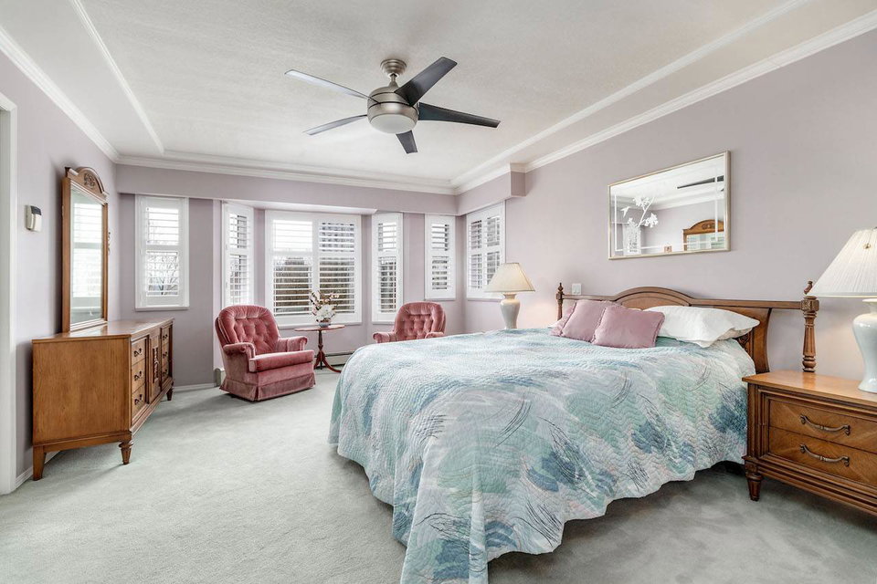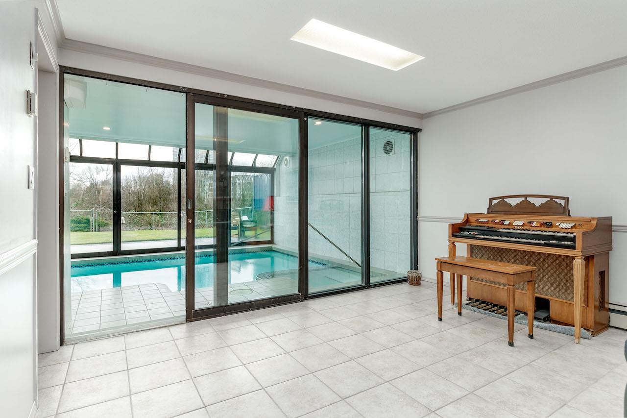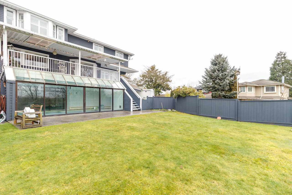 ONE OWNER HOME! Flat Cul-de-sac with a view of river and mountain and greenbelt! The absolute BESt location on the Best street in Fraserview! South and East facing rear yard. Extremely well built family home with big bright rooms, HUGE foyer with spiral staircase and over size den on main (could be ‘master on the main’ or?) Pleasing formal living room/dining room combo separated by sliding French doors. Big, bright kitchen/eating area/family room overlooking the flat rear yard. The master suite up boasts a large walk-in closet, make-up counter and 6 piece ensuite. 1 bdrm NANNY suite down with separate entry and separate laundry. Basement also has a bright recroom with gas fireplace, sauna and indoor pool and hot-tub with sliding glass wall to open to rear yard.