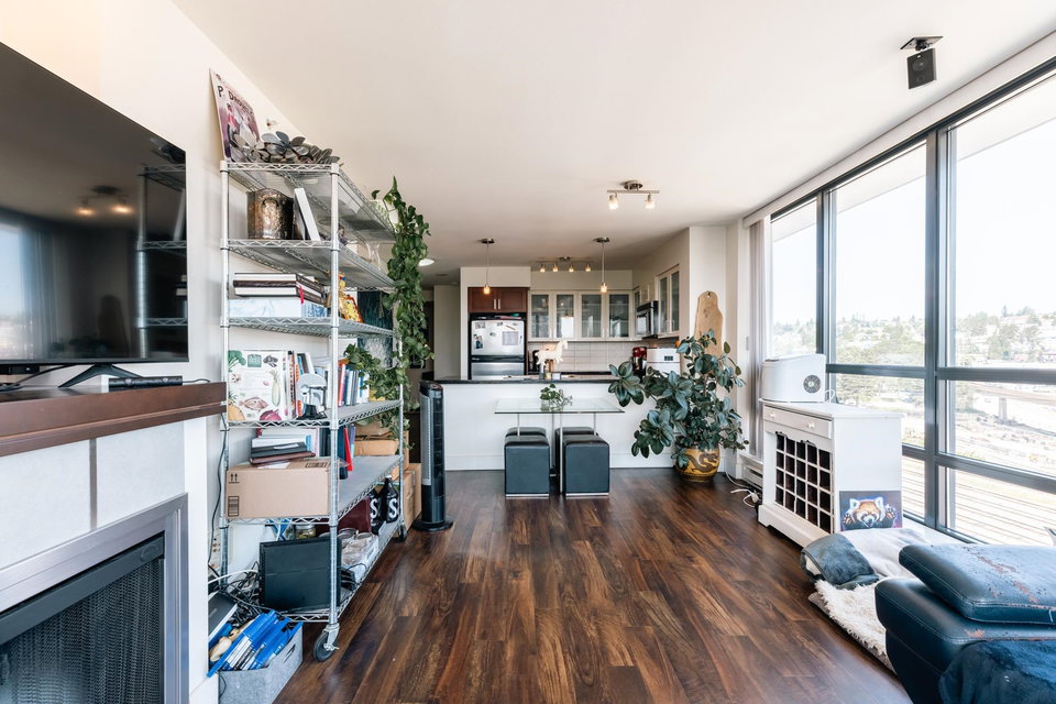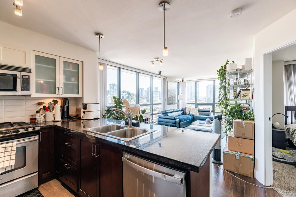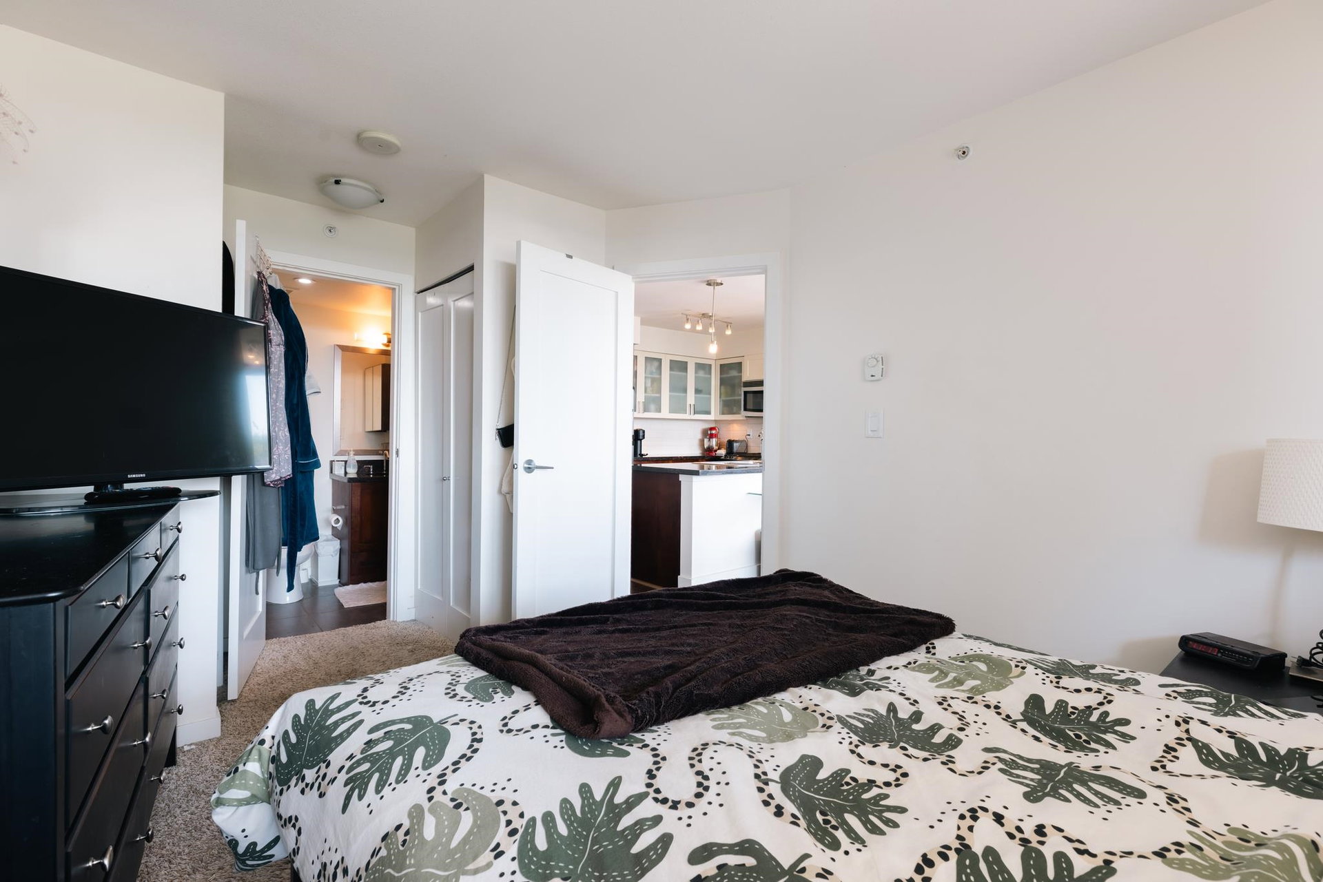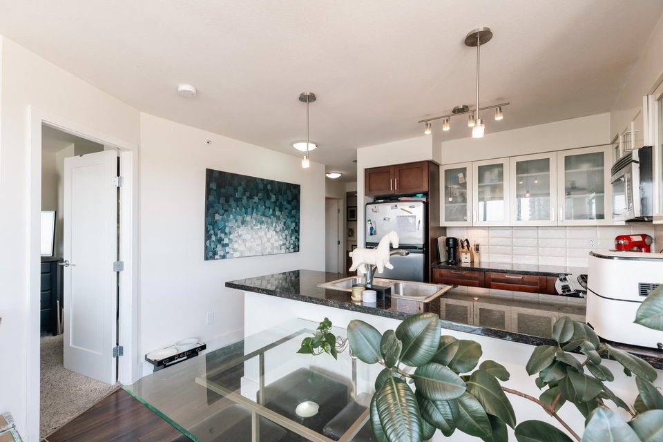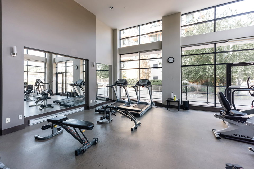 The Q by Aragon on the water in New West Quay! Fantastic open concept layout – 2 bed 2 bath 950 sf Corner Unit with city & Fraser river views! Kitchen features granite counters, stainless steel appliances with gas range & lots of storage. Good sized living & dining rooms with wide plank laminate floors & tons of windows/natural light. Bedrooms on opposite side of the unit including beautiful primary with walk through closet & 4 pcs ensuite. Super desirable location on the boardwalk, short walk to downtown New West, pier park, skytrain, restaurants, cafes, shopping. Building has a great gym! 1 parking & storage included.