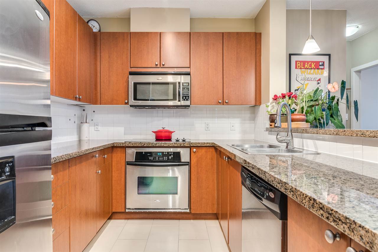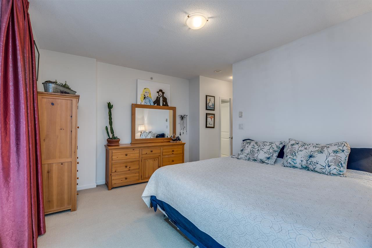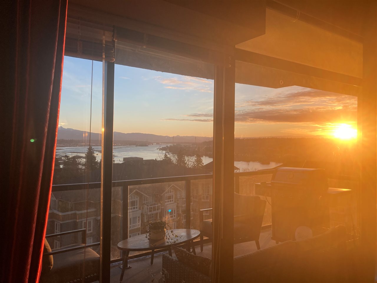 Stunning! SE facing corner unit with jaw dropping views! This amazing 2 bed + Den condo features over 1100 sqft of functional living space. Showcasing kitchen w/ granite counters, wood cabinets, tile backsplash, breakfast bar, and stainless-steel appliances. Including electric cooktop, front load oven, large fridge, and built-in microwave! Kitchen opens up to open living/dinning area featuring gas fireplace, large windows, and direct access to sprawling covered patio; perfect for bbqing and enjoying the stunning river views! Master bedroom features large ensuite w/ soaker tub and his & hers sinks. Additional flex space can be converted to bedroom, or office space. Includes 2 parking 1 locker, and insuite laundry. Great building, amenities include: gym, sauna, pool, hot tub, and bike room.