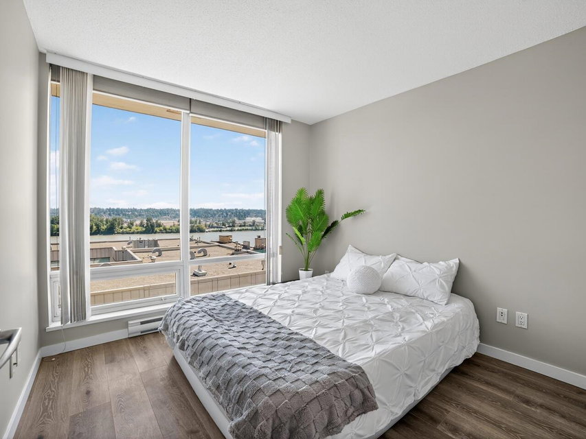 The ABSOLUTE, SMARTEST floorplan around! GENIUS two bedroom and MASSIVE den that’s BIGGER than most bedrooms to be a 3rd without a window or closet! This AWESOME Bosa QUALITY build is in the CENTER of it all in downtown New Westminster! Throw in some river and city VIEWS from directly facing the Fraser River, gas cooktop for the chefs, electric fireplace for AMBIANCE, MASSIVE floor to ceiling windows in ABUNDANCE to take in the South facing all day BRIGHT sun for light with some PERFECTLY, FRESH painted walls and you have yourself a HECK of a HOME! GORGEOUS stone countertops, S/S appliances, STUNNING flooring and an actual small laundry/pantry room and not just a closet door are just a few things to add! Two dogs (up to 20″ to the shoulders) or two cats allowed! This is one not to MISS!