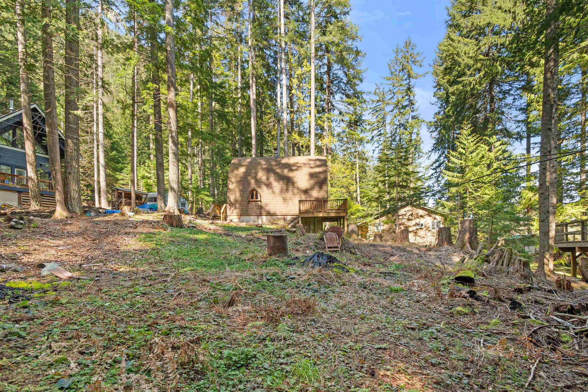 Rustic cabin with mountain and lake views in popular Sunshine Valley. This FREEHOLD level lot is nestled on a quiet cul-de sac and is almost 8,000′. The living room opens to the front deck & the classis serene cabin view. A pellet wood stove to keep you warm on winter nights and a large supply of pellets is included. There is a cozy kitchen, a 3 piece bath plus upstairs 2 bedrooms. Secure storage under the cabin, room to build a shop or garage for the toys. 15 minutes east of Hope for, 30 minutes to Manning Park, Sunshine Valley is your dream outdoor destination that is an easy drive from the Lower Mainland. Full time living, weekend treat or maybe AirBnB you decide on how you spend your time. 4 seasons of outdoor adventure. Join the community rec centre; pool, hot tub, courts, playground.