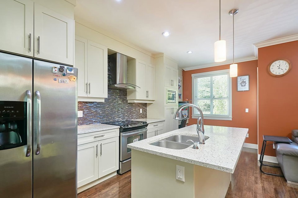 NVESTOR Alert! Gorgeous, Bright w/lots of Natural light, this 4 Bedroom 3.5 Bath, Double Garage townhome is located close to Everything(Schools, Shopping, Recreation & Transit – walking distance to the future SKYTRAIN station ). This exceptional T/H features an open concept layout, over height ceilings, chefs kitchen w/ SS appliances & granite countertops with a spacious family room & private balcony perfect for your summer BBQ’s. Huge Master Bd w/ensuite , 2 more Bdrms & a 4 pc bath, laundry plus a 4th bdrm w/a full bathroom, ideal for the in laws/extended family. Unbeatable location, Private Setting, only 15 Units in Complex, Pro Active Strata w/Low Strata fees perfect for a growing family-10/10. Nothing to do just move in! O/H Sat 1-3pm/Sun 2-4pm, by appointment. Call now!