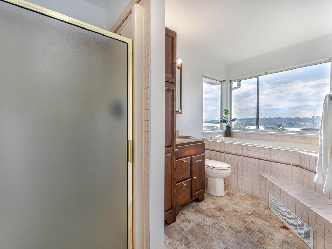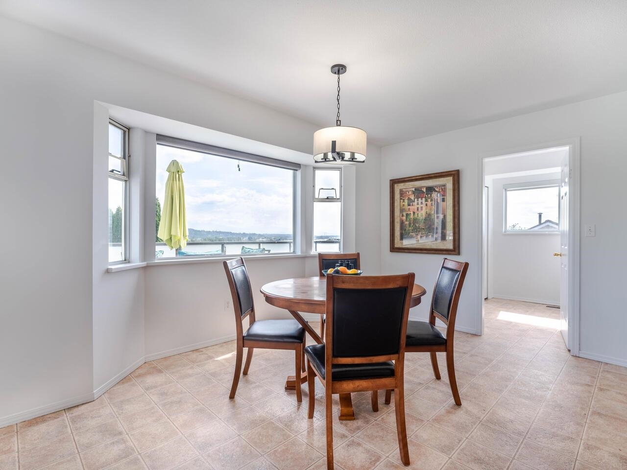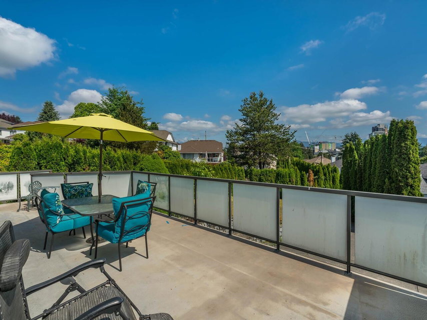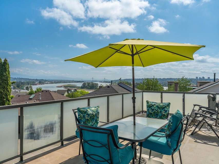 Welcome 84 Richmond St. a remarkable family home, framed w/mature landscaping, leading to the covered front entry. Wood floors run thru the spacious living room w/ a gas fp & dining room. A huge eat-in kitchen w/ oak cabinets & s/s appliances sits next to the family room. Sliding doors open to a massive sundeck looking over a tree lined backyard with views east, down the Fraser River. A guest bathroom & office rounds out the main floor. New carpets lead upstairs to a full washroom + 2nd/3rd bdrms. The primary bdrm & ensuite enjoy an unobstructed river/bridge view w/ the sunrise shining in on the soaker tub, separate shower & top floor balcony. The lower level has 2 more bedrooms, sharing a three-piece bathroom, opposite a family room & wet bar. 2 large storage areas, incl. a furnace room with a HE Lennox furnace, lead to the dbl garage & covered parking for 2 more. 3D virtual tour at Realtor’s site.