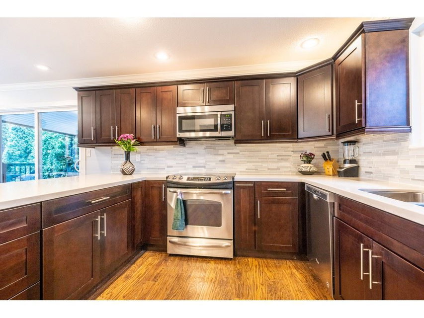 Completely Renovated 4 Bed & Den 3 Level-Split Family Home Ready to Move In! Newer Kitchen w/wrap around Island Counter Covered in Quartz ideal for Cooking, Entertaining, or Dining. Formal Dining room exits onto 240sqft Covered Deck. All Windows Double Pained! Crown Molding and Engineered Laminate floors. 2& a half baths all-reno’d & Show Beautifully. Vaulted Ceilings in the Living room w/ Large windows and a Cozy Gas fireplace. Lower level offers a generous Rec-Room with wainscoting & B/I shelving, wet bar, and Brand New Carpeting! 80+ Jet Hot Tub- also Brand New-submerged in a 918 sqft main deck. The lot is an impressive 8,266 sqft fully fenced & the back yard offers artificial turf. Enter All this down a Cedar tree lined Private Driveway, with an Electric Gate!