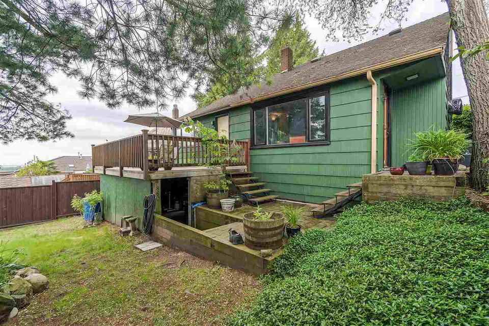PHENOMENAL CORNER lot on the VIEW side that doesn’t come around too often! FUTURE GOLD at today’s price! Livable house with the master bedroom on the main floor and two rooms upstairs which you could get away with using one as a bedroom. Driveways on two side of the lot, one that leads to a carport and one that leads to a detached garage that has skylights & plan was for living space. Build a DREAM house one day that would have INCREDIBLE views but now, just enjoy the AWESOME newer deck and TONS of yard space with a type of AMBIANCE you just don’t come across too often! Quiet, family oriented neighbourhood with Connaught Elementary less than a block away, 5 min walk to skytrain and quick access to arterial roads. Don’t let this GOLDEN opportunity pass you by!