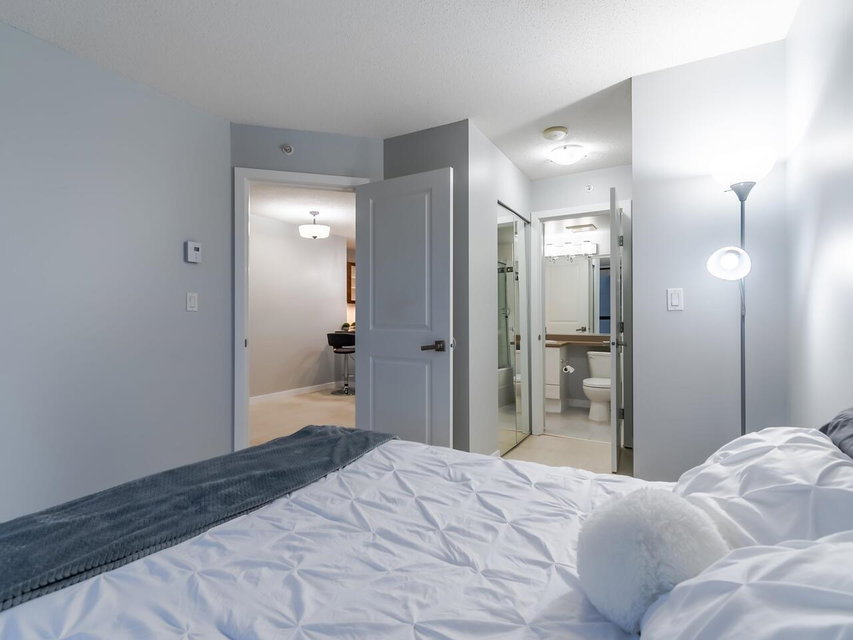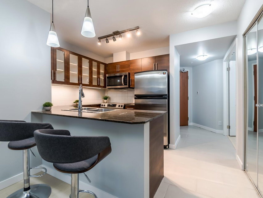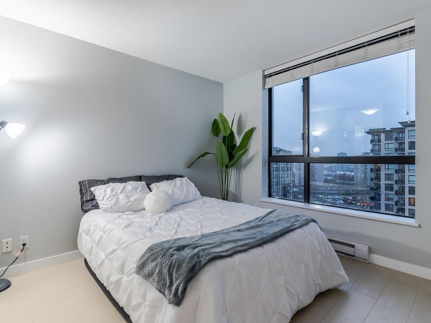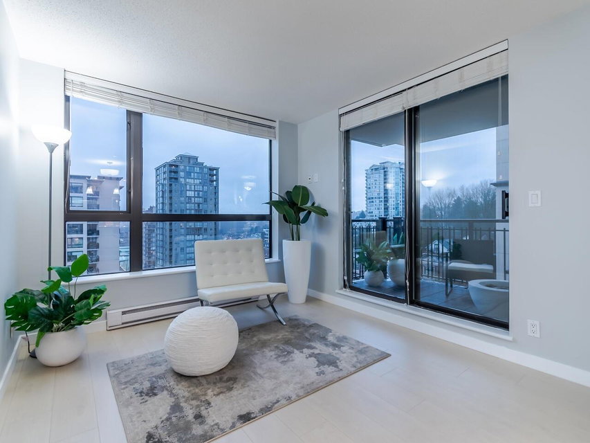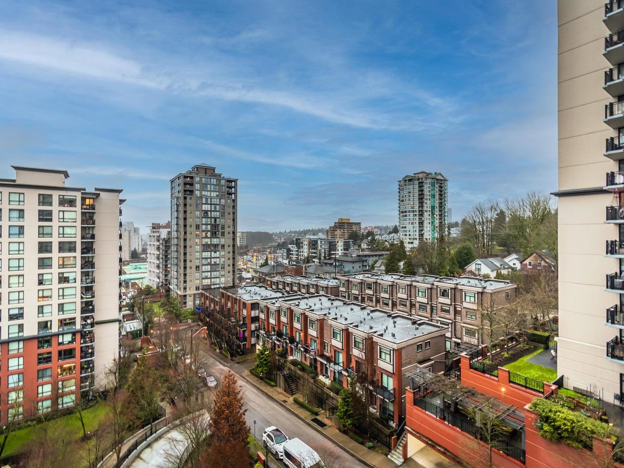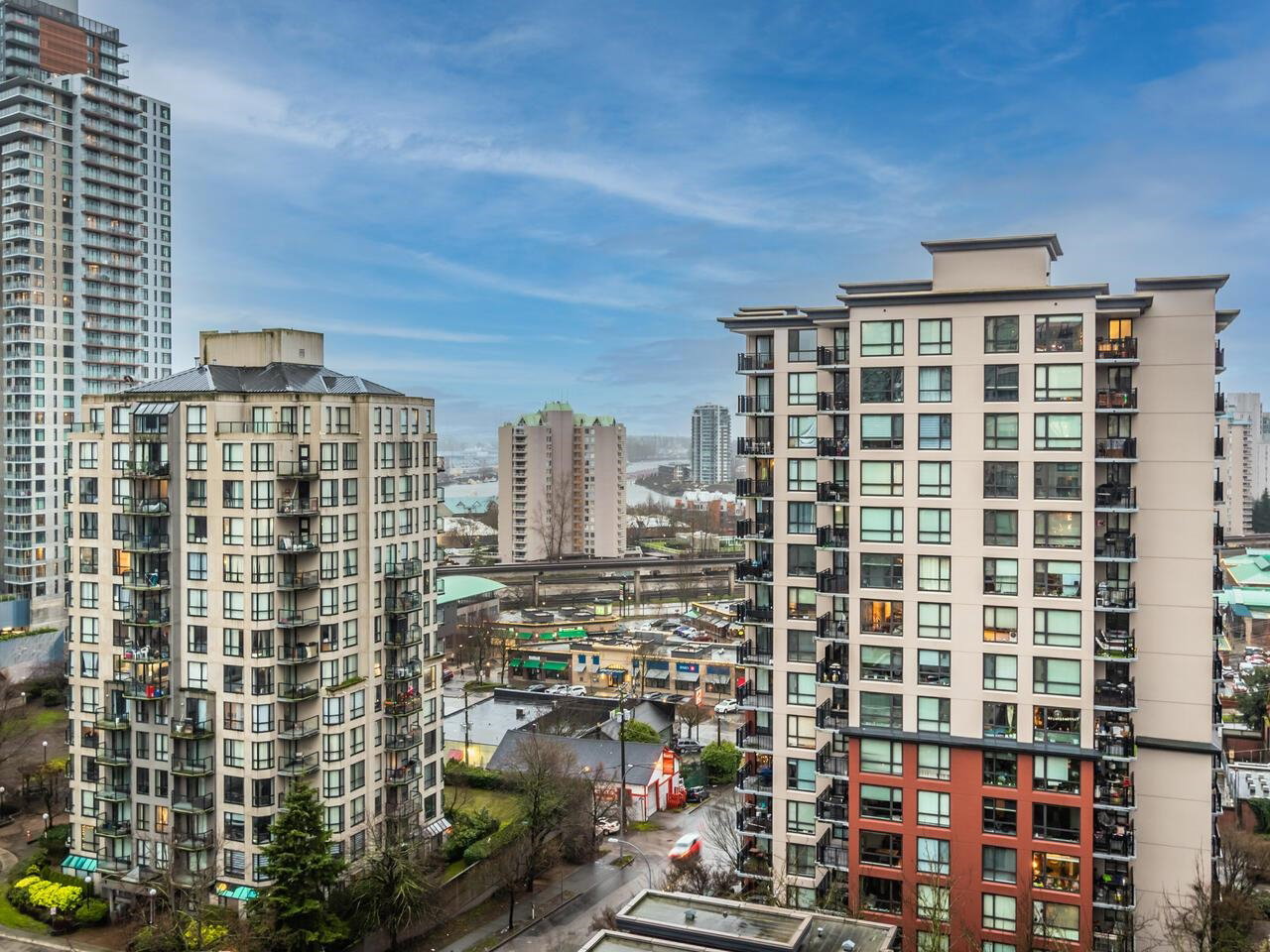 This AWESOME two bedroom and den HOME with the den large enough to act as a bedroom with doors (no window or closet) and one cheater ensuite bathroom has an IDEAL layout and use of space that can be utilized much better than most condo’s and especially at this price! GORGEOUS granite counters, STUNNING flooring, just FRESHLY painted are just a few things to mention! GREAT city and distant water views on the BEST SouthWest corner from this QUALITY built complex a block from skytrain, Douglas College and all the amenities of being right downtown has to offer! An investor’s DREAM or the PERFECT HOME to live in! One parking and storage locker! One dog or cat allowed! Not one that you want to miss as layouts like this in this price range don’t often come around! Open Sat 12 to 3 & Sun 2 to 4!