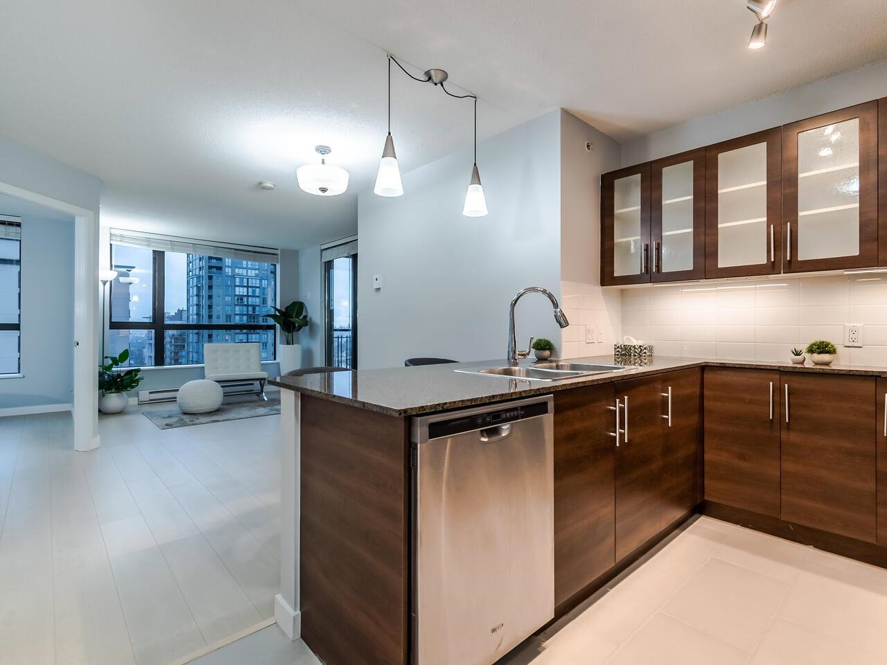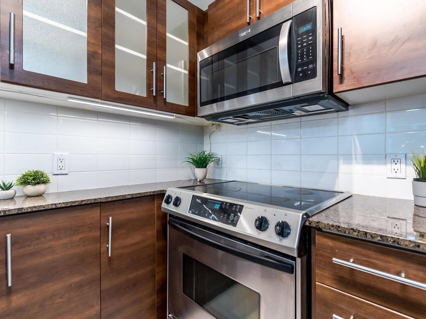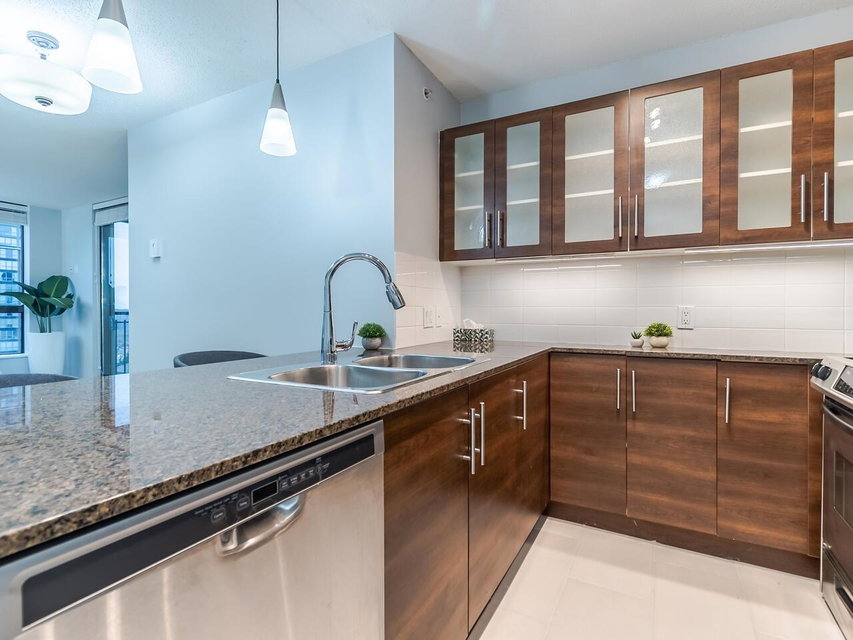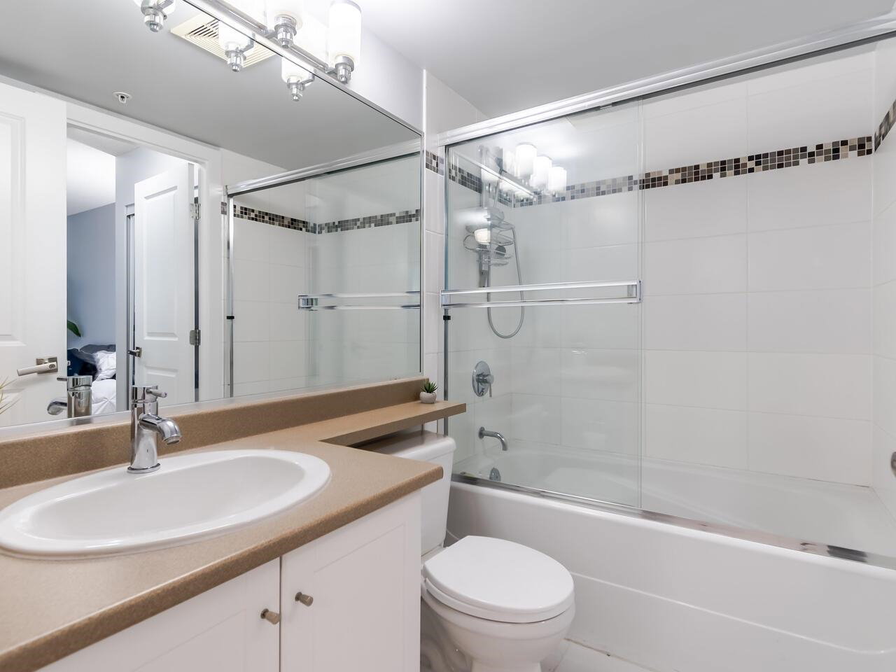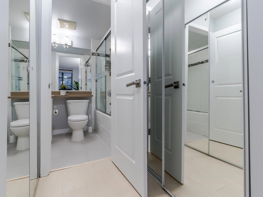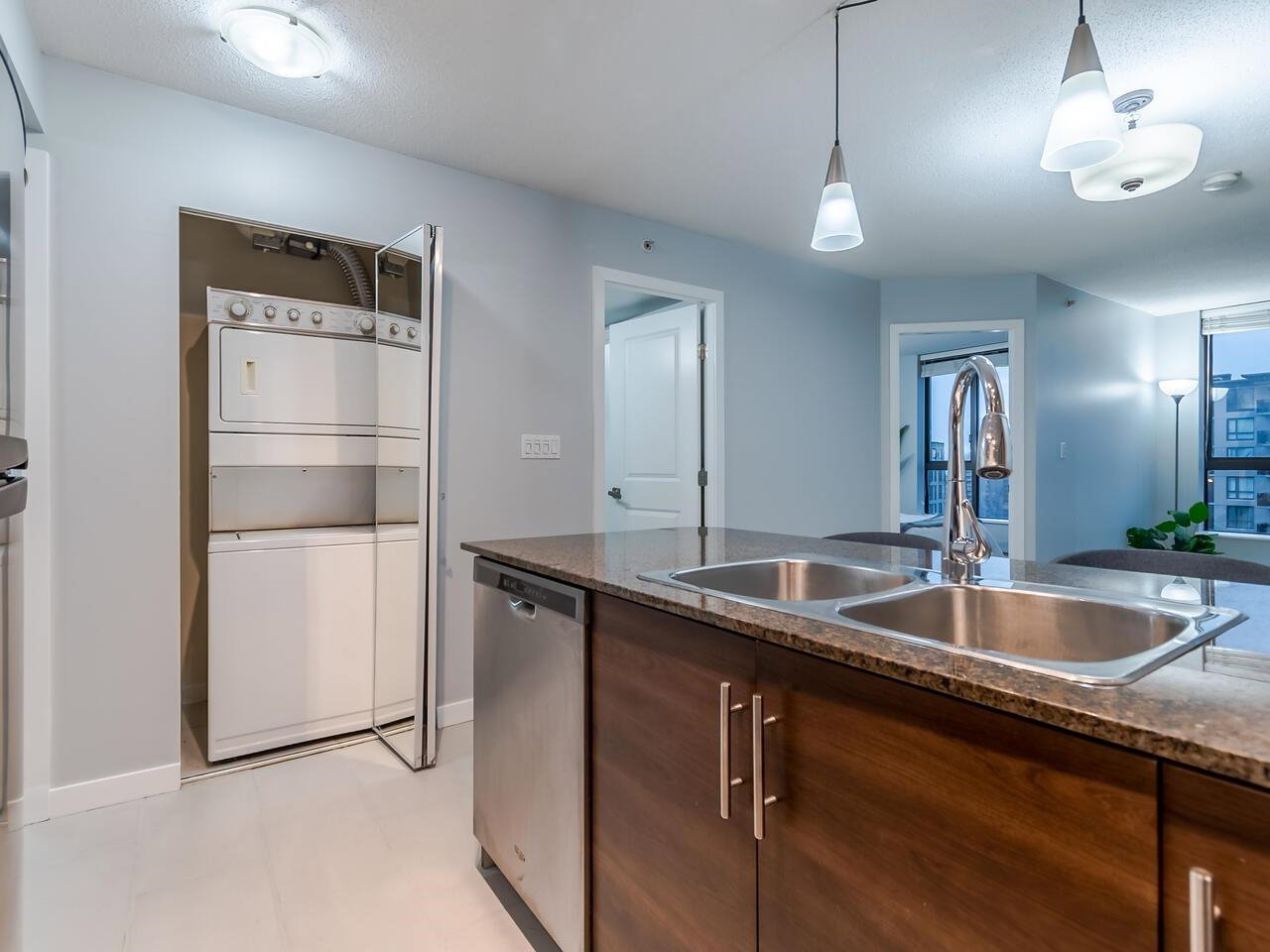 This AWESOME two bedroom and den HOME with the den large enough to act as a bedroom with doors (no window or closet) and one cheater ensuite bathroom has an IDEAL layout and use of space that can be utilized much better than most condo’s and especially at this price! GORGEOUS granite counters, STUNNING flooring, just FRESHLY painted are just a few things to mention! GREAT city and distant water views on the BEST SouthWest corner from this QUALITY built complex a block from skytrain, Douglas College and all the amenities of being right downtown has to offer! An investor’s DREAM or the PERFECT HOME to live in! One parking and storage locker! One dog or cat allowed! Not one that you want to miss as layouts like this in this price range don’t often come around! Open Sat 12 to 3 & Sun 2 to 4!