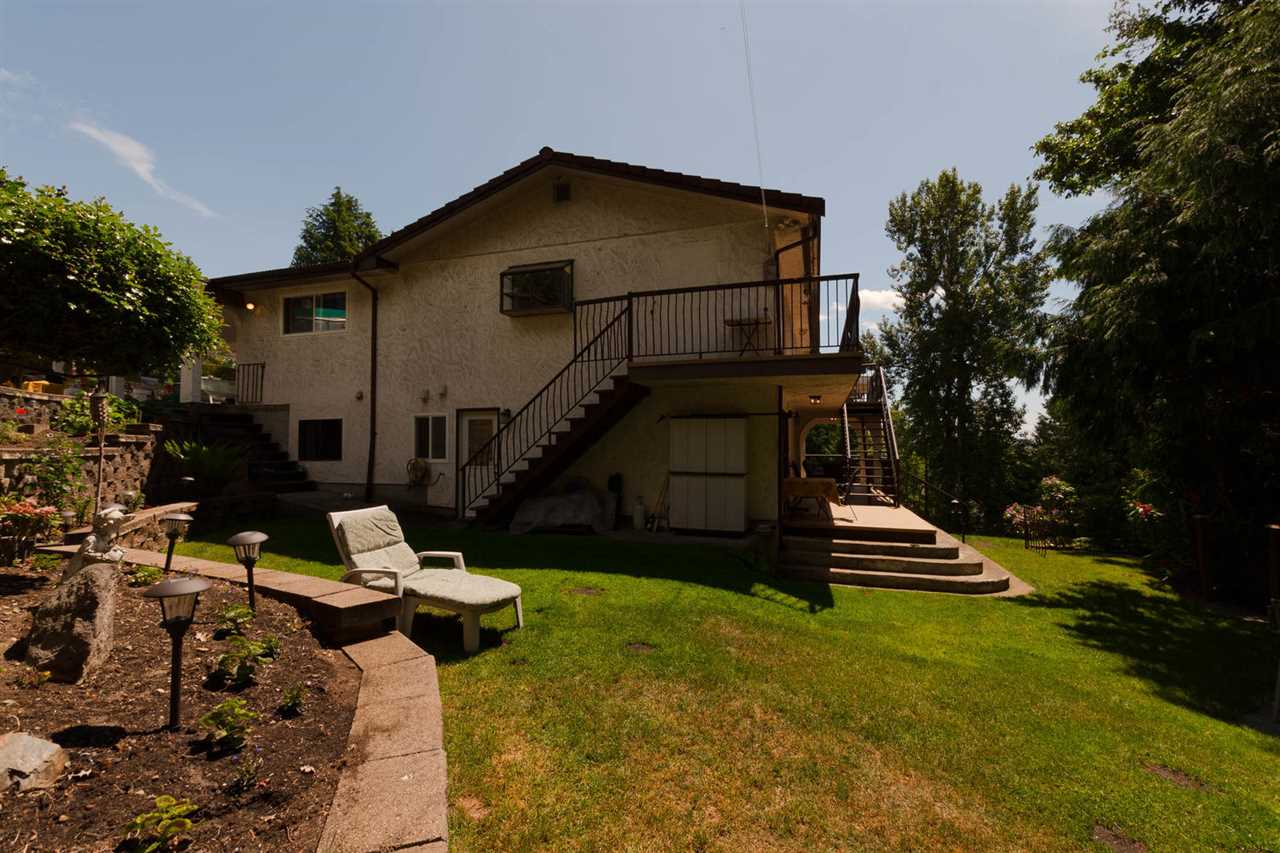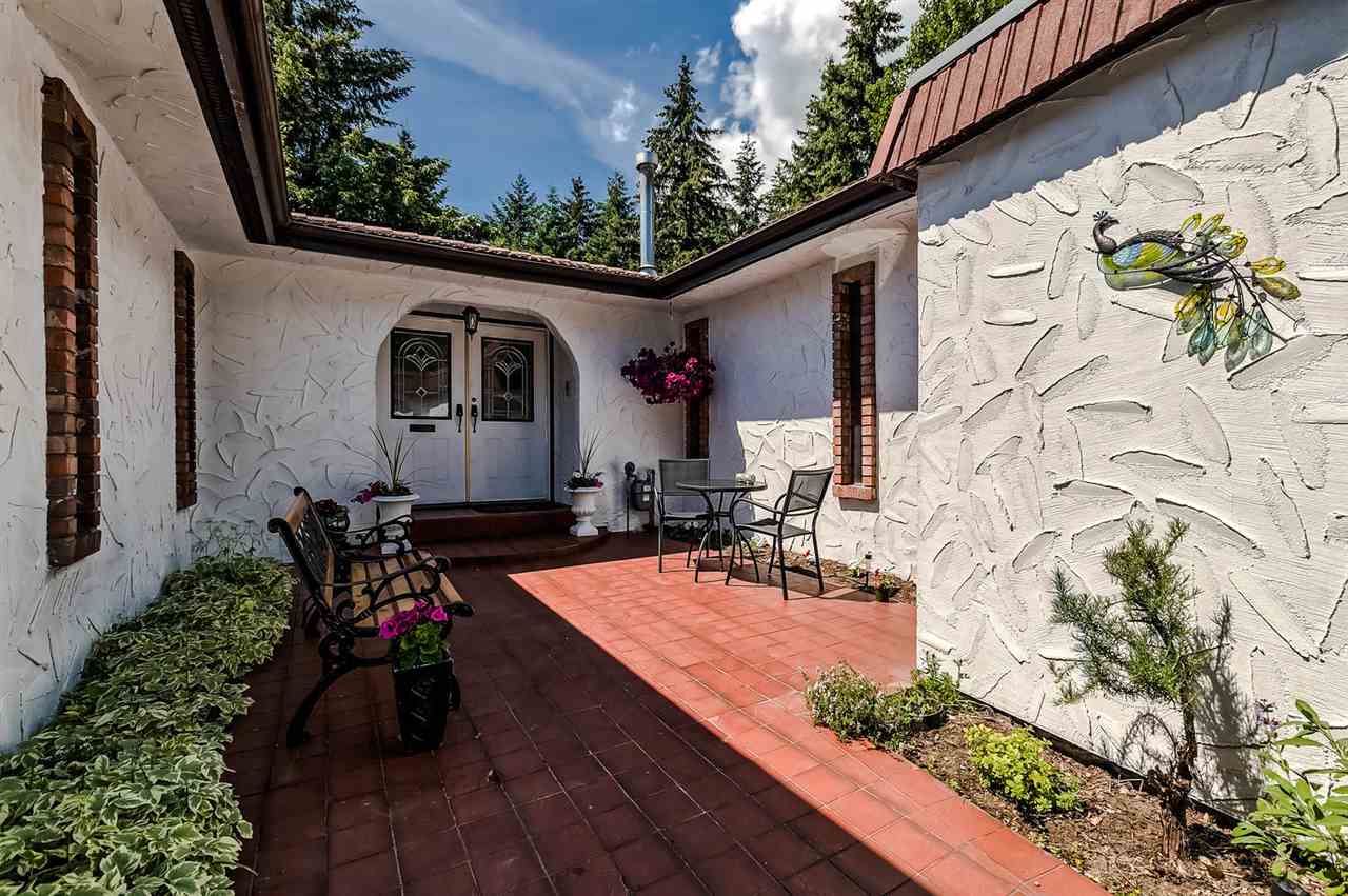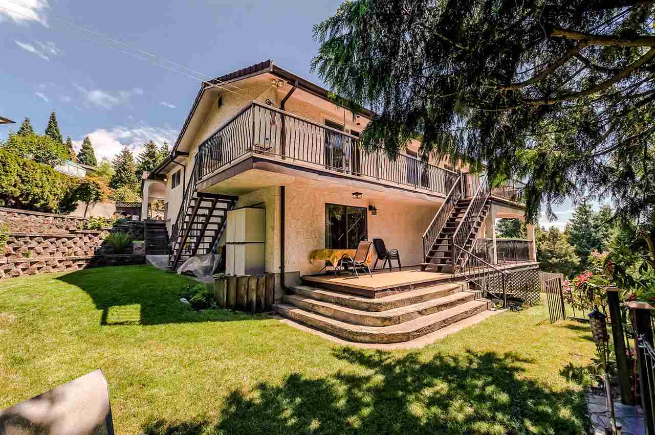 RARITY!!! A 1-4 Acre of PURE BLISS with a fence line on a Burnaby FOREST! In a cul-de-sac with a lane (actually a named street) going down the side of this GOREGOUS property with a greenbelt all around & PRIVACY you just don’t find anywhere in New West! MASSIVE decks to take in some views on a slope with RV parking down below or a multitude of other options! Resort style HACIENDA look with a courtyard entrance, 2 wood f/ps, 3 bed up & down, kitchen roughed in below, New water line, power underground & even at the bottom of the property, bbq gas line, newer appliances, gas stove, mostly new windows, real workshop & more storage than you could possibly fill! You just don’t find properties like this so don’t miss your chance!!!