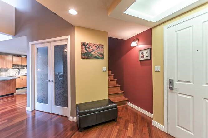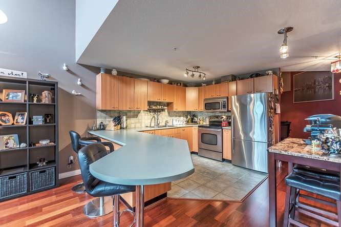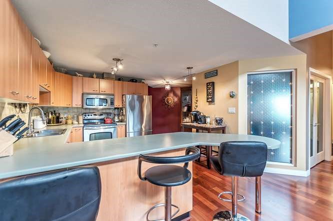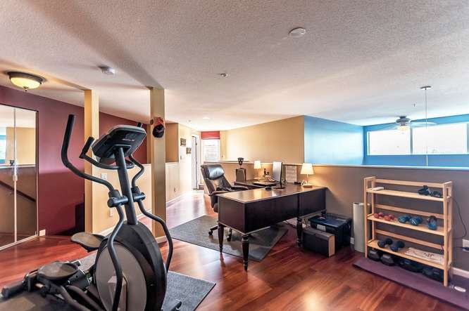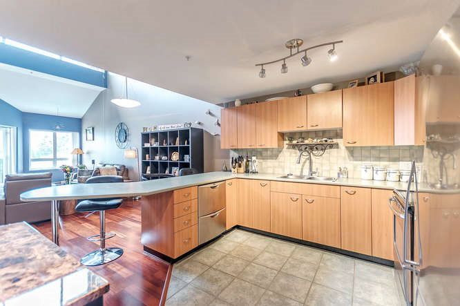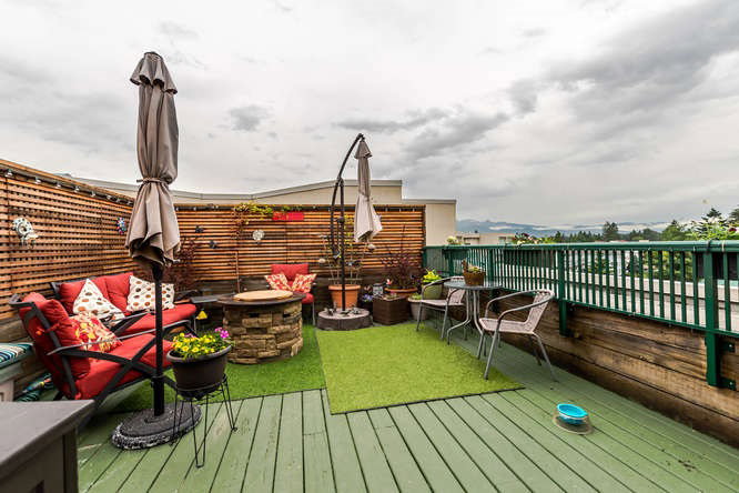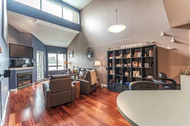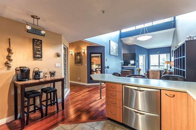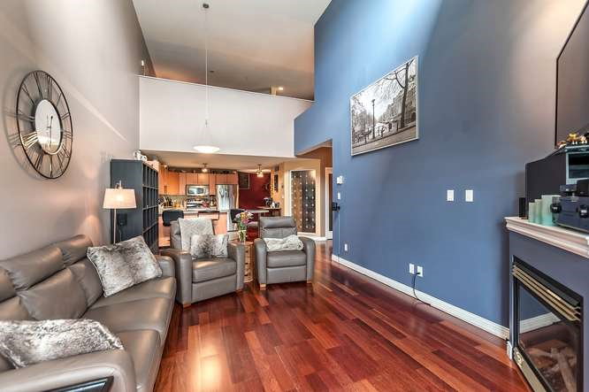 Absolutely STUNNING penthouse style 2 LEVEL loft suite w/ soaring vaulted ceilings, in a low-rise CONCRETE building. Great open floor plan that features a large kitchen with eating area, gorgeous formal dining room, tons of square footage that includes 3 bedrooms and a den. Rich engineered hardwood flooring throughout, tile flooring in kitchen, 2.5 baths and a BBQ balcony off the main level. Enjoy lounging on your private rooftop deck oasis w/ mountain views. 2 underground secured pkg stalls & storage locker. Hot water & gas included in maintenance fees. Open house Sat/Sun June 24/25 2pm – 4pm.