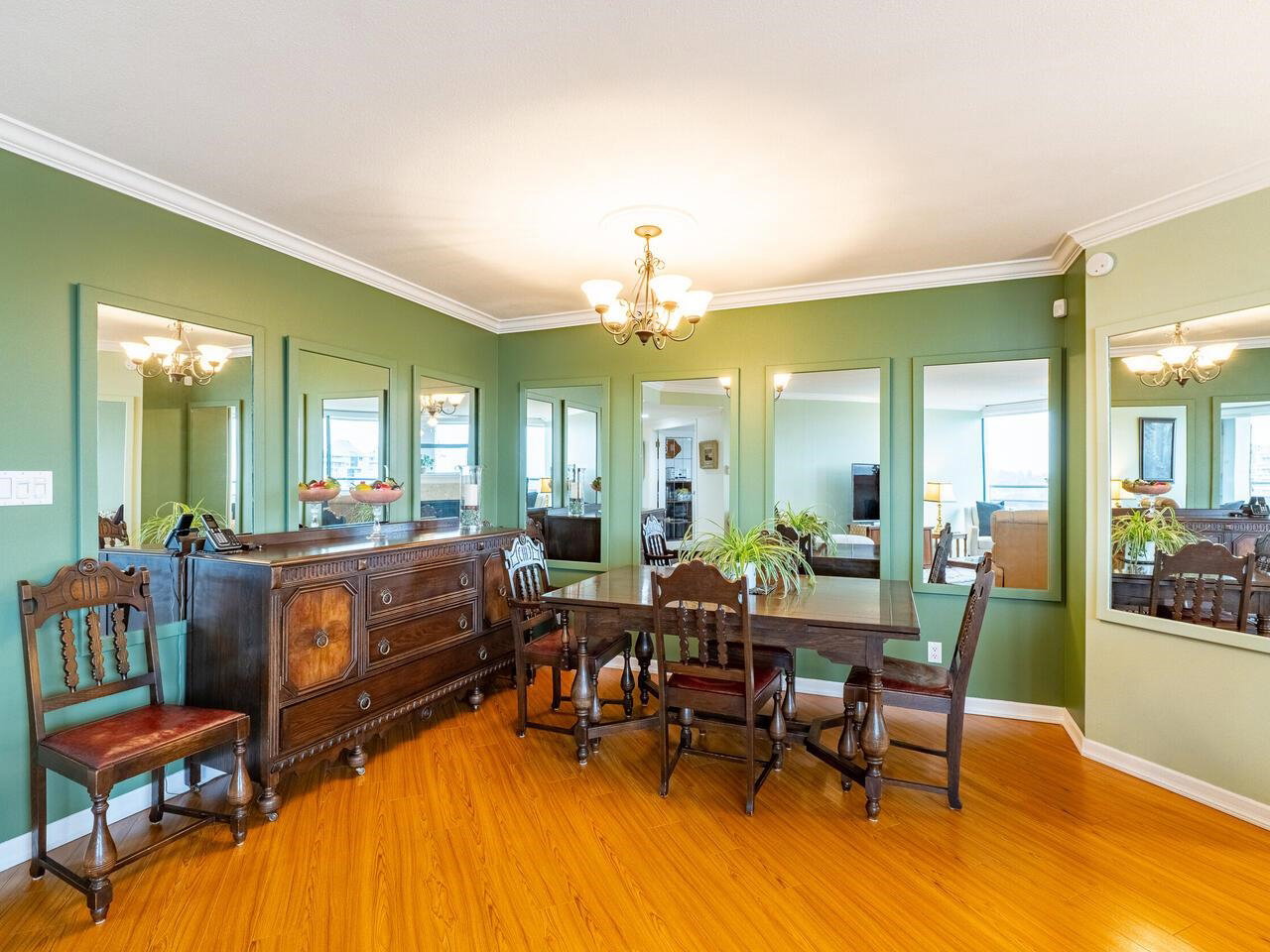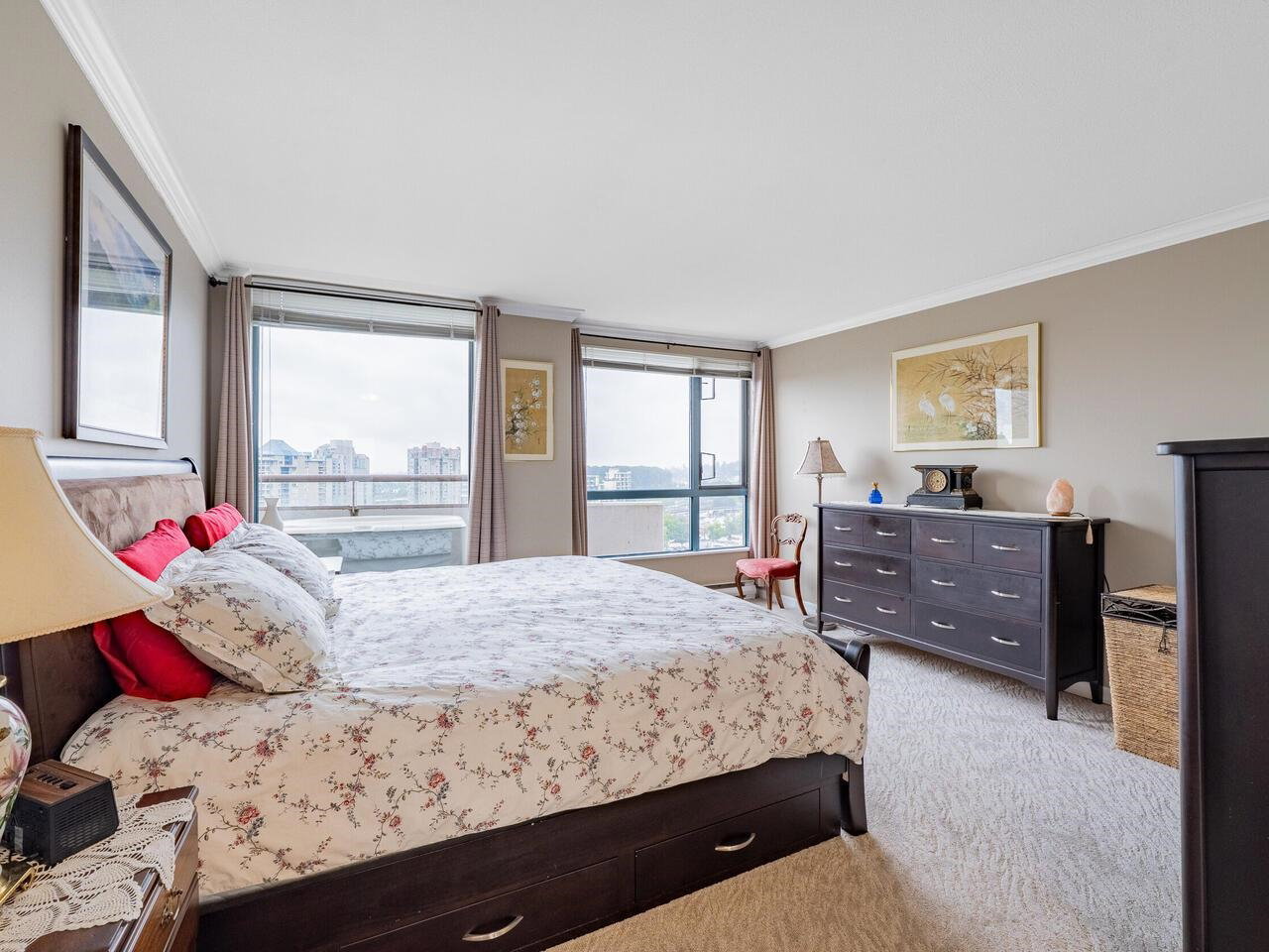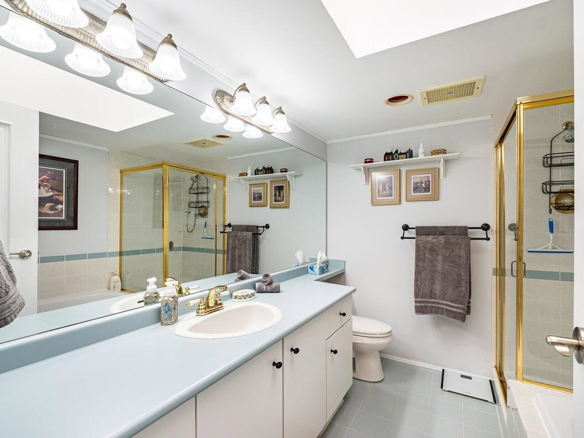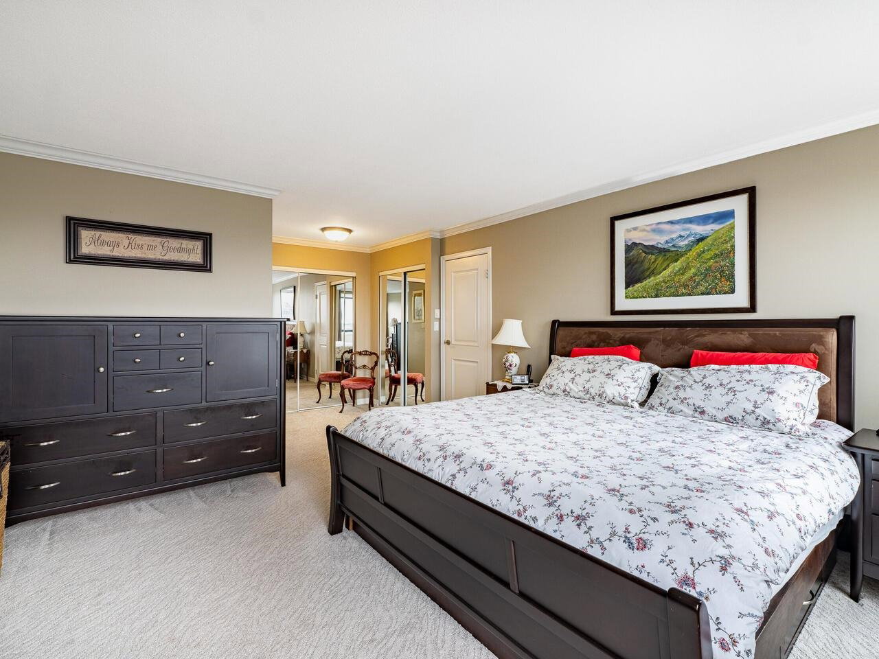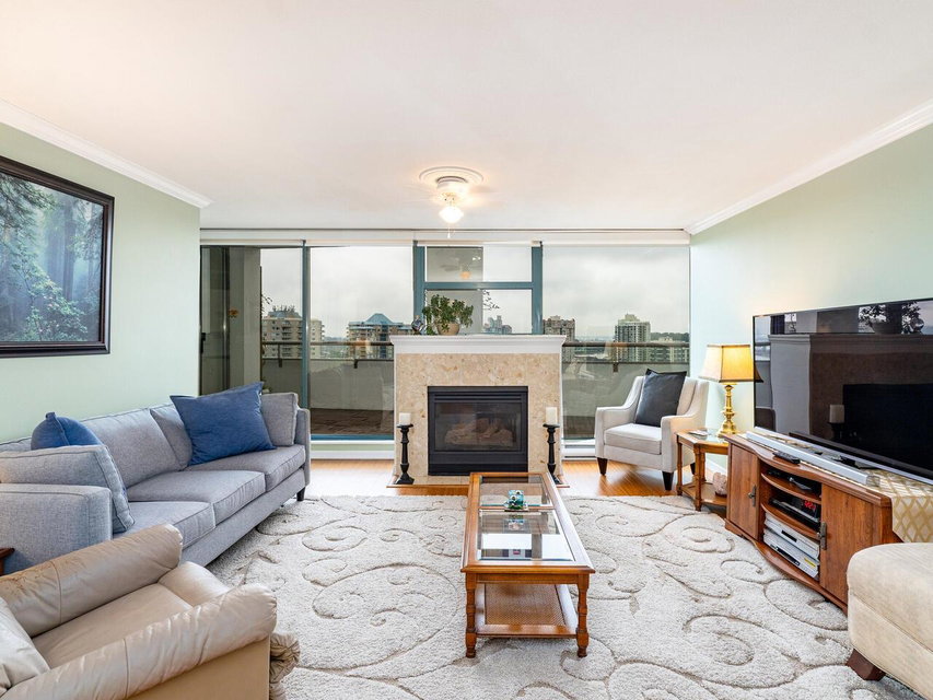 Penthouse living awaits you in the heart of downtown New West at Plaza Pointe. This incredible 1606 sq.ft. home boasts expansive Fraser River views. A large tiled foyer leads to the living room with a gas fireplace & dining room before entering the bright eat-in kitchen with black granite countertops surrounding stainless steel & black appliances & a skylight overhead. Sliding doors from both the kitchen & living room lead to the 439 sq.ft. balcony with edge to edge, composite wood tiles. French doors off the foyer open up to a beautiful home office & option for a third bedroom. The end of the hallway opens up to a huge primary bedroom suite with twin mirrored closets, & a five piece ensuite with a separate glass, enclosed shower next to the soaker tub & skylight above. Downstairs a 50′ lap pool is surrounded by windows & next to the well appointed fitness facility, showers & change rooms plus an amenity room lounge with a bar & full-size billiard table. 2 cats/dogs allowed. 3D virtual tour at Realtor’s site.